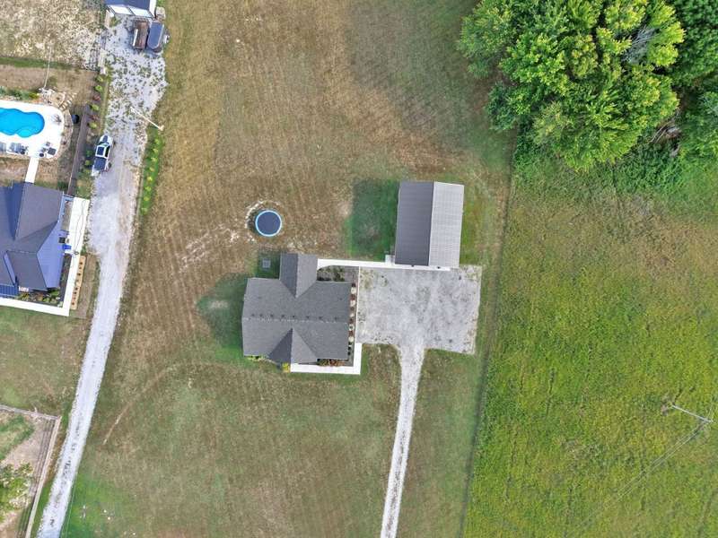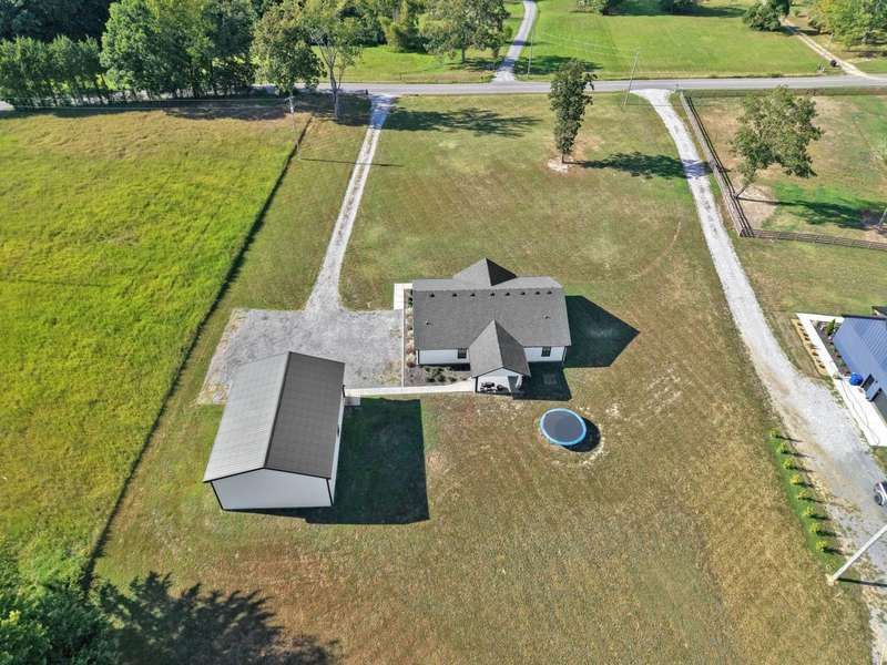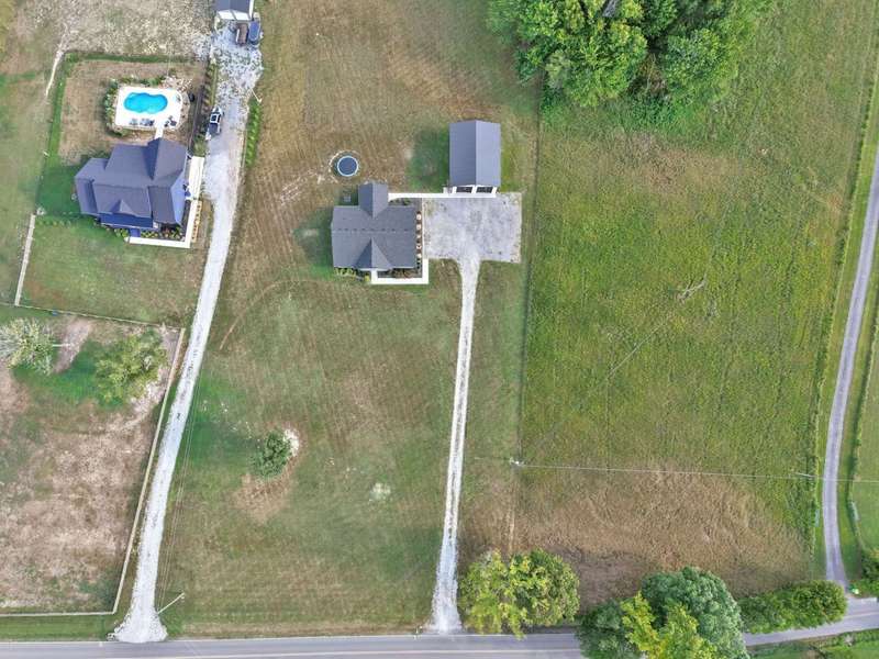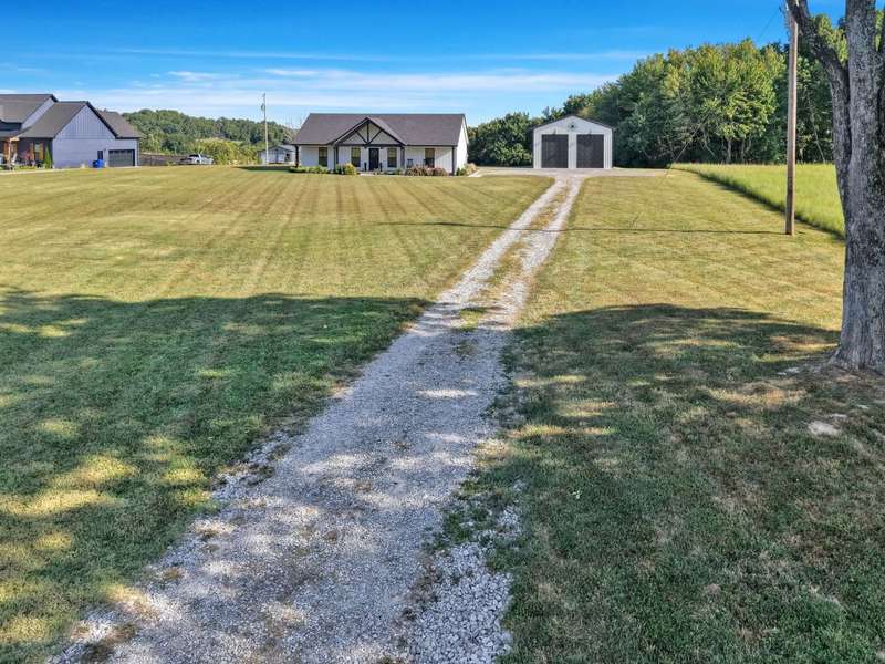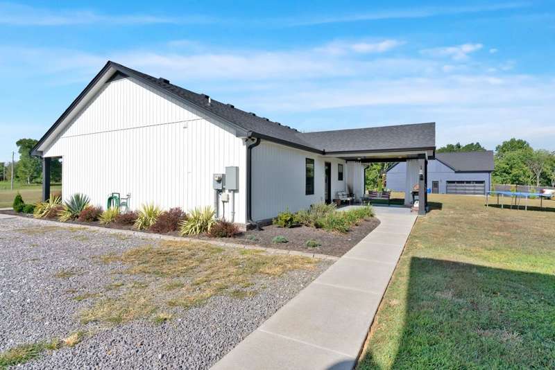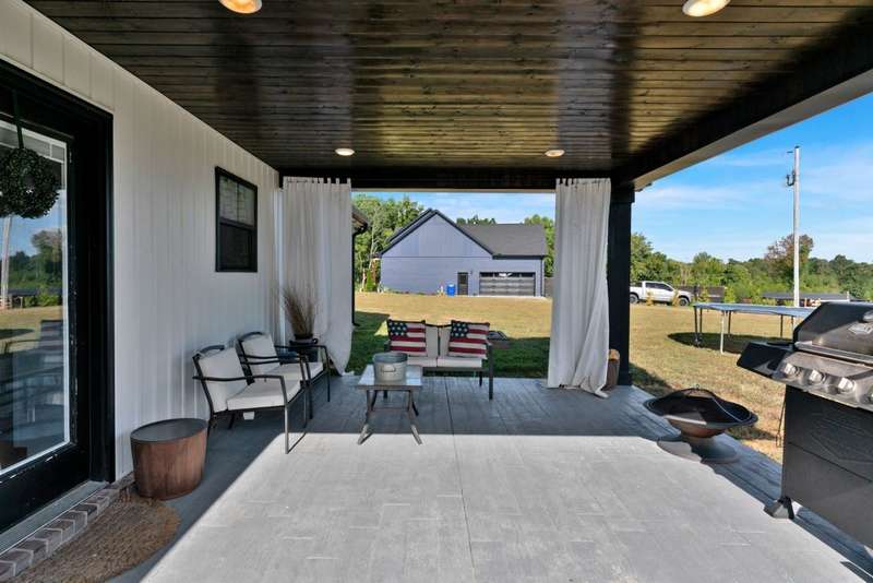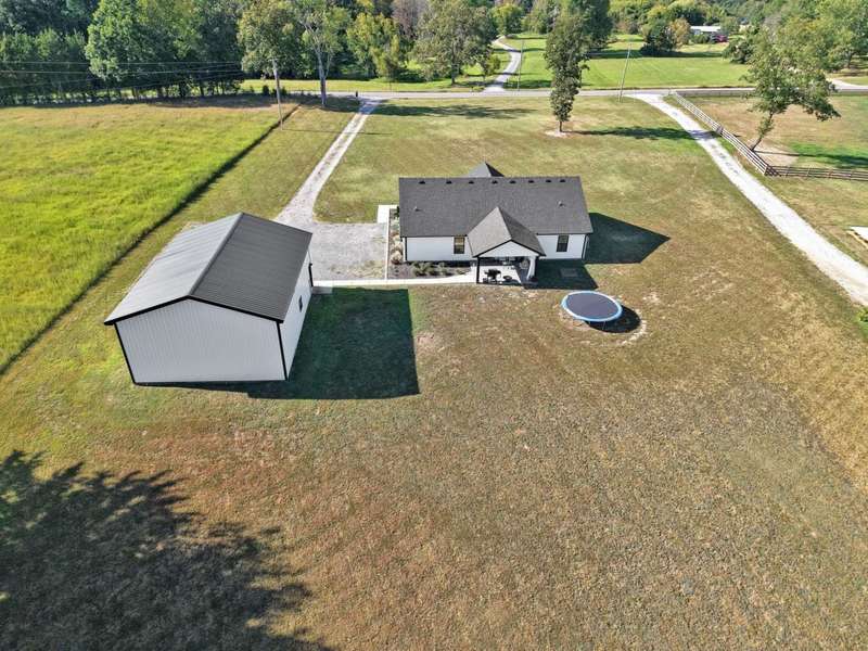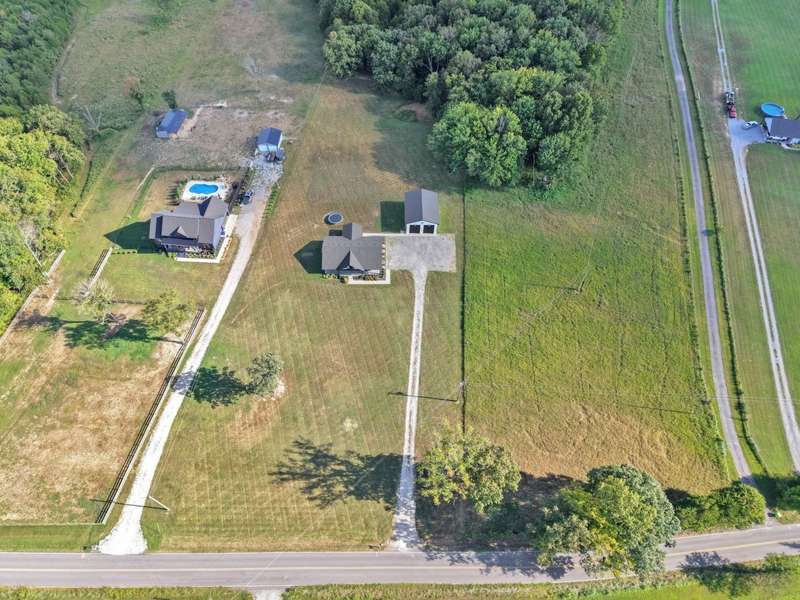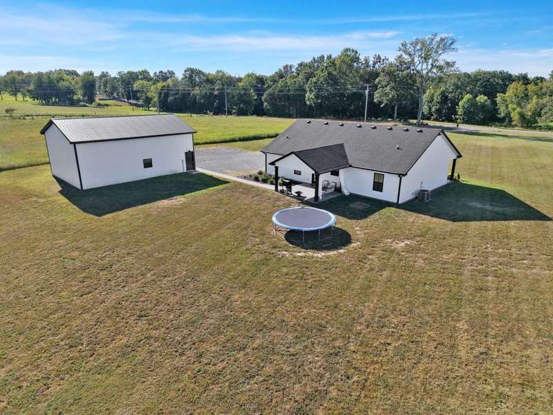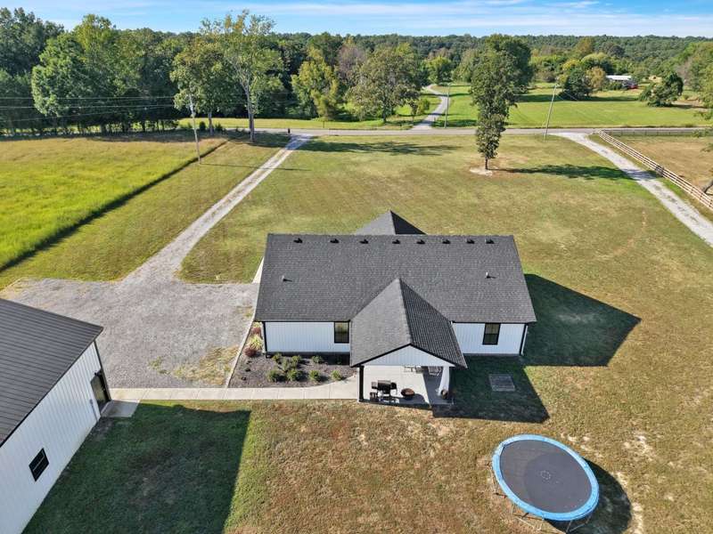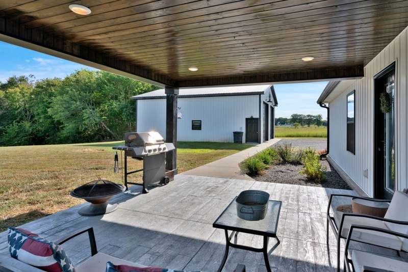 Welcome to this stunning 2021-built farmhouse-style home nestled on 5.25 serene acres, offering the perfect blend of modern comfort and country charm. Featuring 3 spacious bedrooms and 2 full baths, this home offers an open floor plan that invites natural light and effortless flow-ideal for everyday living and entertaining.The thoughtfully designed split-bedroom layout provides privacy with the spacious primary suite located opposite the secondary bedrooms. The primary retreat includes a full bath with double vanities and a walk-in closet.Enjoy peaceful mornings on the inviting covered front porch, and host unforgettable gatherings on the stamped concrete back patio-both adorned with beautiful wood ceilings that elevate the home's rustic elegance.Need room for your hobbies, tools, or toys? You'll love the 30x40 detached shop, complete with two 12-foot doors, soaring 14-foot ceilings, and 220-volt electrical service-perfect for a workshop, RV storage, or home business.Whether you're looking for wide open space, a quiet escape, or a place to pursue your passions, this property delivers. Don't miss your chance to own this rare combination of land, style, and functionality! Curtains do not remain. Professional pictures coming soon