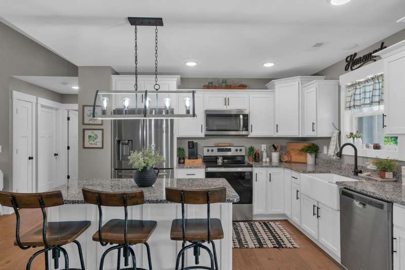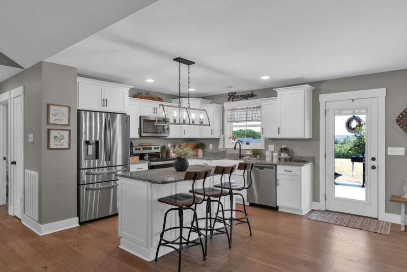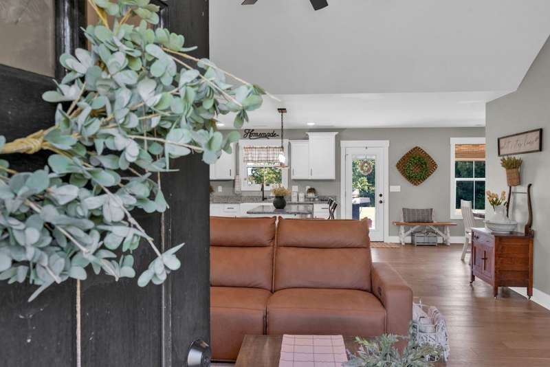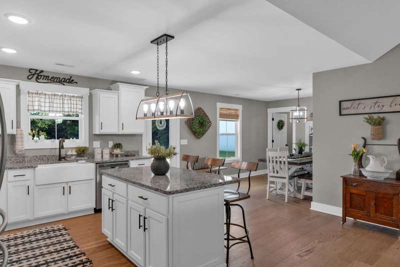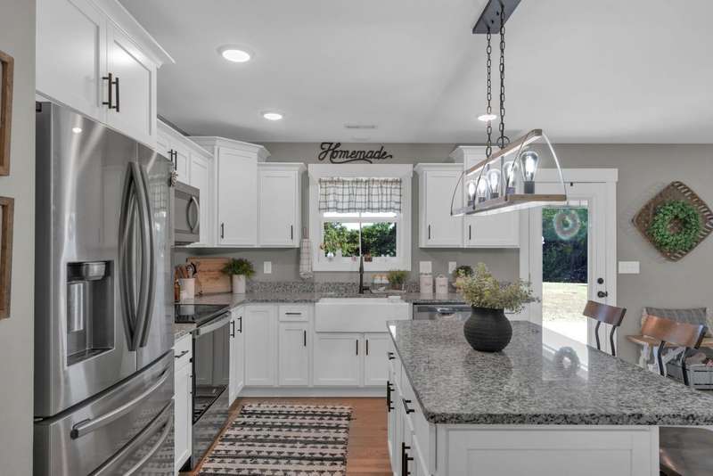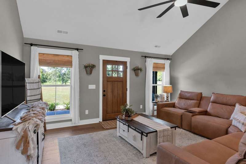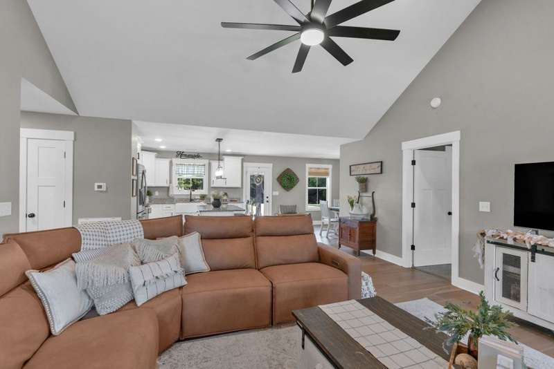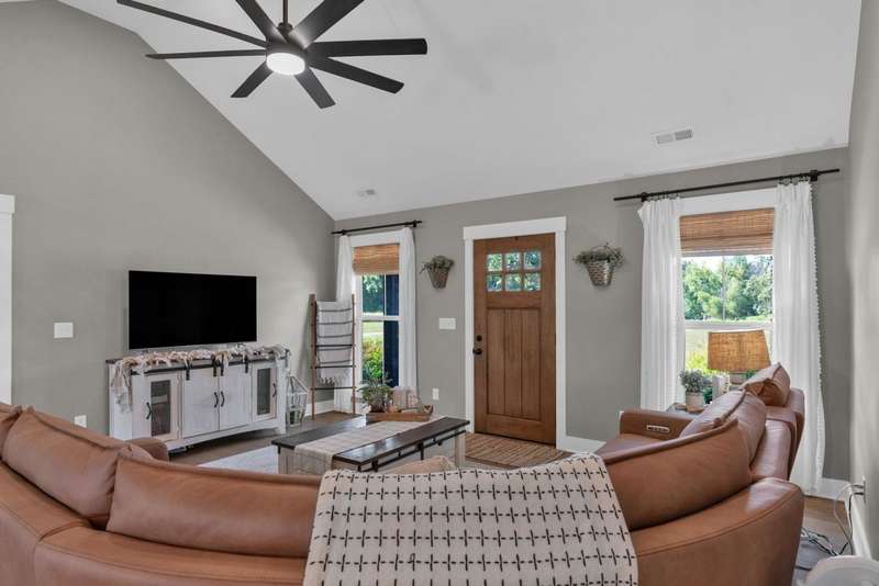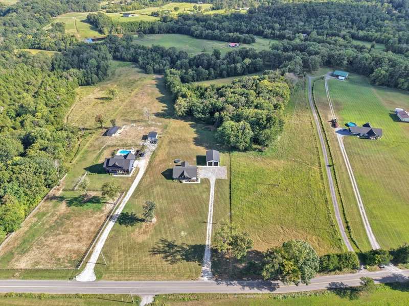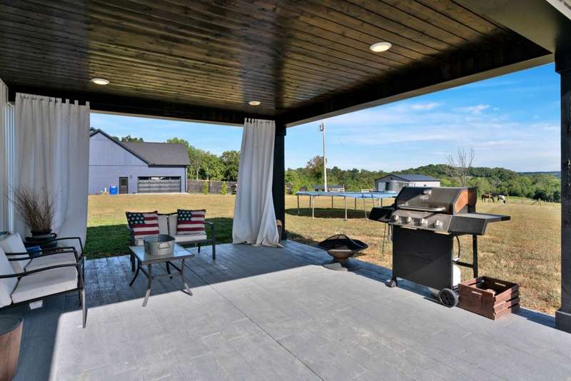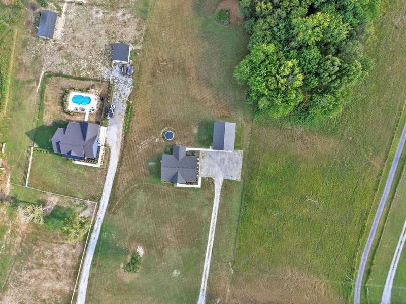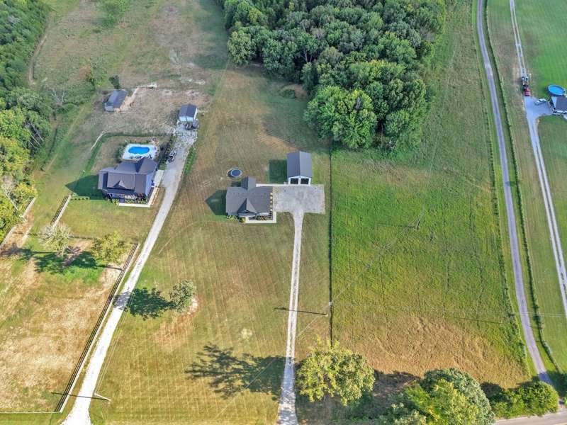 Welcome to this stunning 2021-built farmhouse-style home nestled on 5.25 serene acres, offering the perfect blend of modern comfort and country charm. Featuring 3 spacious bedrooms and 2 full baths, this home offers an open floor plan that invites natural light and effortless flow-ideal for everyday living and entertaining.The thoughtfully designed split-bedroom layout provides privacy with the spacious primary suite located opposite the secondary bedrooms. The primary retreat includes a full bath with double vanities and a walk-in closet.Enjoy peaceful mornings on the inviting covered front porch, and host unforgettable gatherings on the stamped concrete back patio-both adorned with beautiful wood ceilings that elevate the home's rustic elegance.Need room for your hobbies, tools, or toys? You'll love the 30x40 detached shop, complete with two 12-foot doors, soaring 14-foot ceilings, and 220-volt electrical service-perfect for a workshop, RV storage, or home business.Whether you're looking for wide open space, a quiet escape, or a place to pursue your passions, this property delivers. Don't miss your chance to own this rare combination of land, style, and functionality! Curtains do not remain. Professional pictures coming soon
