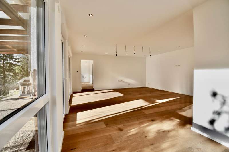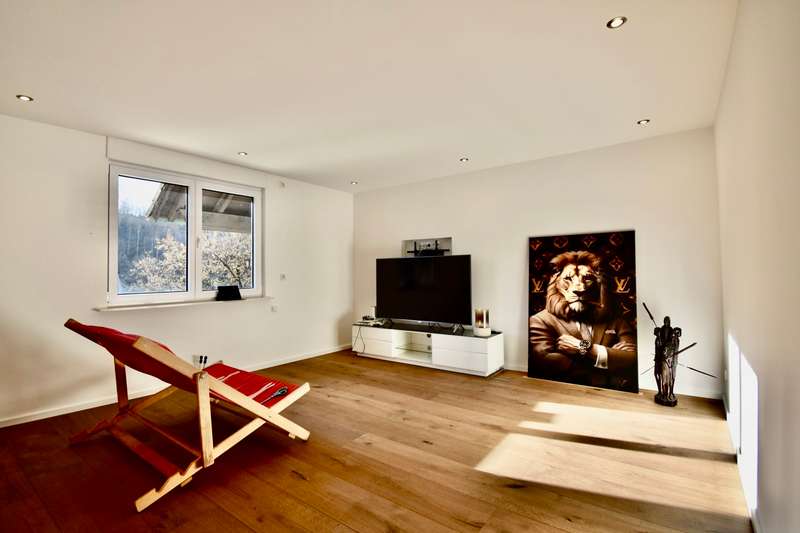 Your new home - exclusive and spacious This exclusive detached house from 1973 is situated on a generous 566 m² plot on a steep slope and offers a living space of approx. 209.27 m². With its eight bedrooms, large master bathroom and 2 guest WCs, including one with a shower, it is ideal for families or couples who value plenty of space and high-quality furnishings. The property was gutted and extensively renovated in 2023, but the new owners still have room for maneuver in the final completion. The modernization focuses on future-oriented heating technology and flexible interior design. In the basement, the living and dining area is already equipped with ceiling heating. A chimney shaft, which extends from the basement to the top floor, also makes it easy to install a water-bearing stove. The preparation for the installation of a modern heat pump offers the buyer the freedom to integrate the energy solution of their choice. The selection and installation of the radiators, which can be chosen by the new owner according to their own taste, is still outstanding. The interior of the house impresses with its choice of fine materials. The living rooms are fitted with elegant real wood parquet flooring, which gives the house a warm and natural feel. The elegant bathrooms stand out with their easy-care, stylish Beton Cire. High-quality double-glazed windows offer optimum thermal and sound insulation. The door frames and interior doors can be individually adapted to the future buyer's living preferences. Another highlight is the electrical room, which houses all of the home's technical installations. The electrics have been completely renovated and include the installation of KNX technology, which enables intelligent control of lighting, heating and other electronic devices. This allows you to control many of the home's functions conveniently and efficiently via app or smartphone. The tasteful master bathroom on the first floor has a free-standing bathtub, a Thielemeyer washbasin, a spacious shower with bench and underfloor heating. A guest WC with shower on the lower floor offers a stylish design with beige Beton Cire and discreet deer motifs. On the top floor, the guest WC with natural light can be customized with a washbasin. The outside area of the house includes a spacious double garage with electric door as well as a carport and two additional outdoor parking spaces. A spacious, partially covered terrace invites you to linger. This detached house not only offers a comfortable living space, but also the opportunity to add personal touches during completion. The final installation of heating technology and interior doors gives the new owners the opportunity to finish the property to their own specifications. At the rear of the house, there are still options for individual embellishment. Experience a home that combines a well thought-out combination of design, functionality and individuality. This property is waiting for you to complete it and make it the center of your life. Arrange a viewing today to see this unique living concept for yourself.