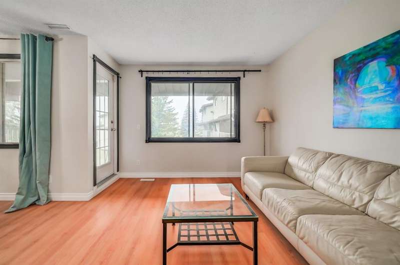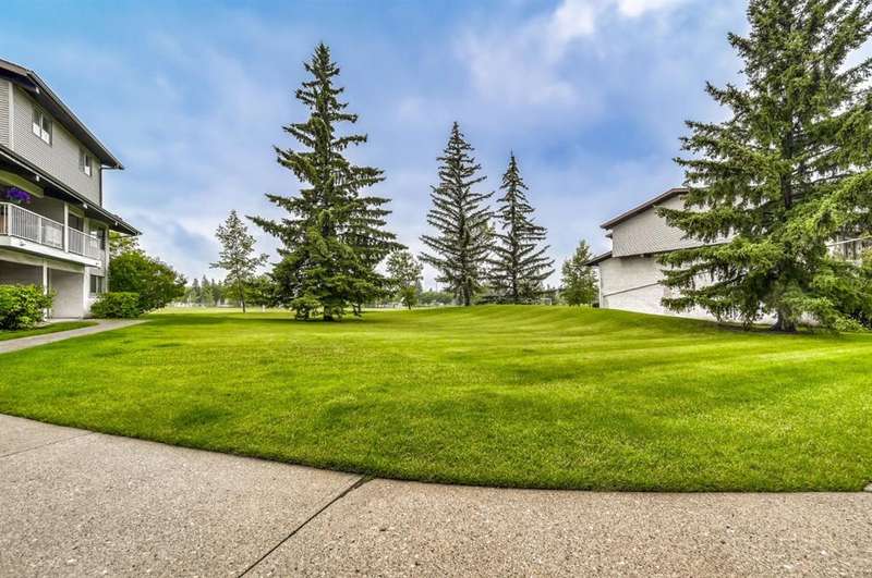 This updated 2-bedroom, 1-bath townhouse offers incredible value in the established community of Braeside. With low condo fees and a bright, inviting layout, it’s the perfect combination of comfort and convenience. Inside, large windows fill the home with natural light, highlighting the open-concept design and stylish built-ins. The upgraded kitchen features a beautiful backsplash, warm wooden countertops, and plenty of space for cooking and entertaining. Durable laminate flooring runs throughout the main level, complementing the smart and functional floor plan. Enjoy views of the nearby park right from your home, along with the everyday convenience of being steps away from shopping, dining, and transit. Quick access to Anderson Road and Stoney Trail makes commuting around Calgary simple and efficient. Move-in ready and exceptionally priced, this Braeside townhouse is a must-see for buyers seeking value in a well-established neighbourhood.