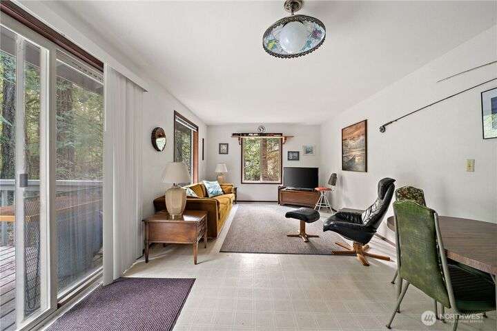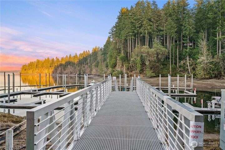 Your retreat awaits! Fall in love w/our wooded paradise. Peek-a-boo view of Pickering Passage w/some clearing from yard of this charming cabin in the woods at Hartstene Pointe's gated beach community. Cozy 2-bedroom, 1-bath home has been lightly used. Partial wrap deck with slider from open living/dining/kitchen is perfect for your BBQ. Newer roof. W/D hookups. A short walk to clubhouse, pool, tennis/sport courts, fitness center & beach trails. Other amenities: miles of salt water beaches & walking trails, BBQ/picnic/firepit areas, marina/ramp, spit/lagoon, patrol and more.