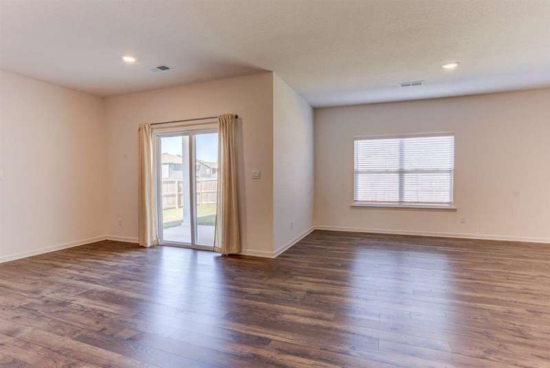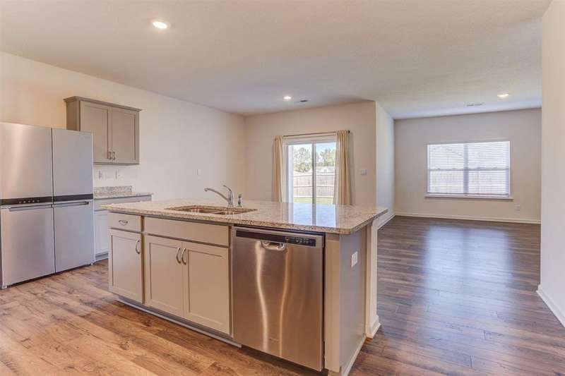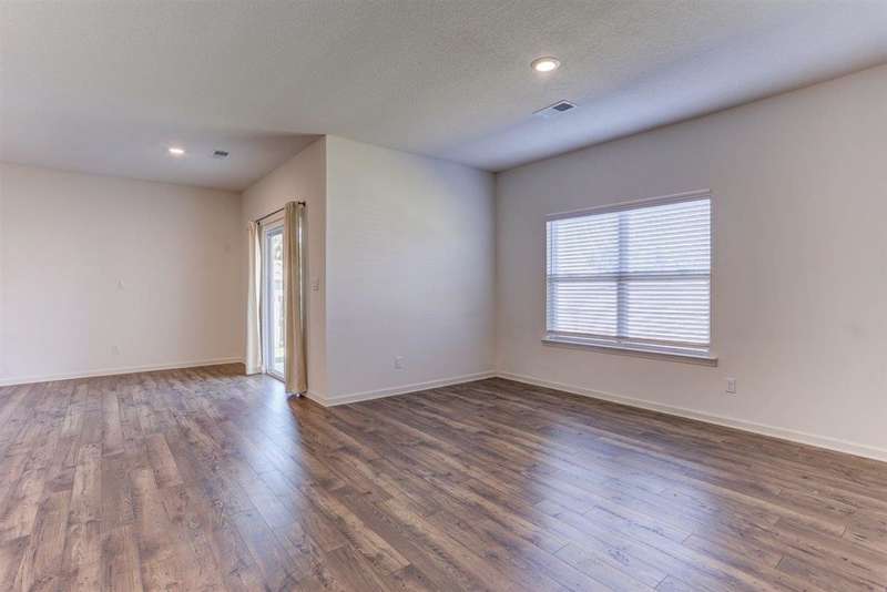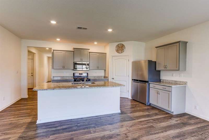 Move-in ready and beautifully maintained, this stunning one-story 4BR/2BA home offers comfort, style, and modern updates throughout. Step inside to an open floor plan filled with natural light and a spacious great room featuring an electric modern fireplace ? perfect for relaxing or entertaining. The gourmet eat-in kitchen boasts stainless steel appliances, a gas range, abundant cabinetry, a large island, and a walk-in pantry. The primary suite provides a serene retreat with an en-suite bath and a generous walk-in closet. On the opposite side of the home, you'll find three additional bedrooms, a full bath, and a convenient laundry room. Enjoy durable wood flooring in the main living areas and plush carpeting in the bedrooms. Outside, unwind on the covered patio overlooking your private fenced backyard, or take a leisurely stroll through the neighborhood with its lush landscaping and peaceful pond.