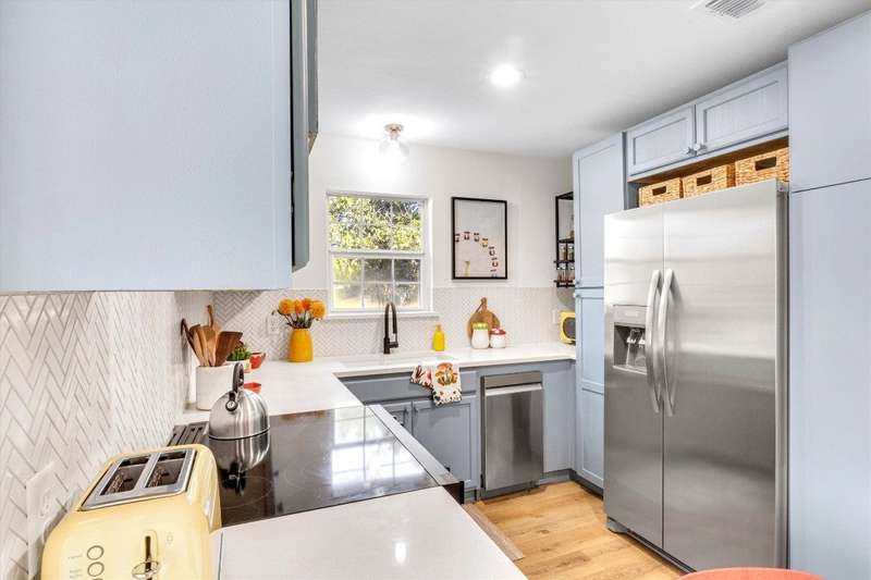 Welcome to 1103 Marshall Street, an adorable ’50s-era cottage reimagined for a modern, vibrant world! All major components and systems have been upgraded over the last four months, including HVAC, electrical, plumbing, roof, insulation and water heater. The interior makes the most of its space, featuring a primary suite, three guest bedrooms and a full guest bath with double vanity and walk-in shower. Natural light fills the open-concept living/dining area through brand-new windows and gleams off the new wood-look vinyl floors. The kitchen is where fun meets functional - all new Frigidaire appliances, shaker-style cabinets, quartz countertops, herringbone tile backsplash and built-in washer and dryer. Step out the back door onto a massive 25x10-foot deck that is sure to make this home the spot for friendly gatherings! The back and side yards leave plenty of room for pets or outdoor fun, and in the front, the new siding, exterior paint, privacy fence and fresh sod help this property pop with cute curb appeal! Located less than 2 miles from Texas State and 4 miles from the outlet malls - with tons of shopping, dining and entertainment between - this property is a fantastic investment in an historic neighborhood that’s primed for a revival! (Note: This home renovation was filmed for a major cable network TV show that will air in 2025.)