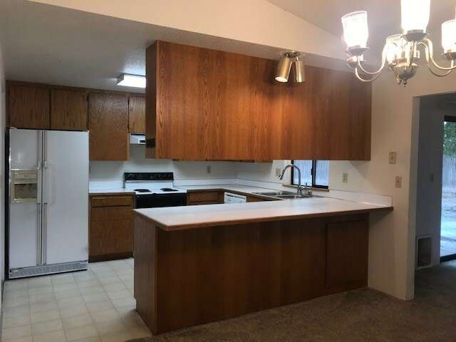 This house has a great layout with a welcoming front living room featuring vaulted ceilings and a split floor plan with the master suite on one side, and two bedrooms on the other side. Large family room opens to the kitchen and dining room. Walk-in laundry room and oversized garage. This house is ready for a new owner to add their personal touches and make their own.