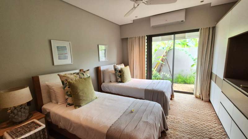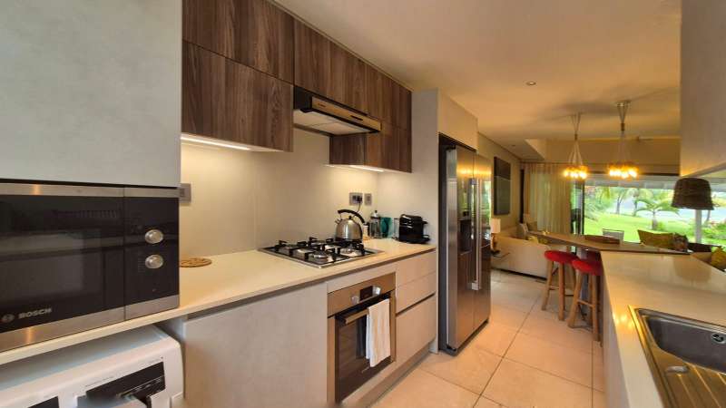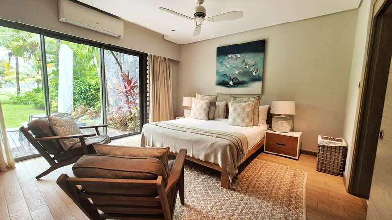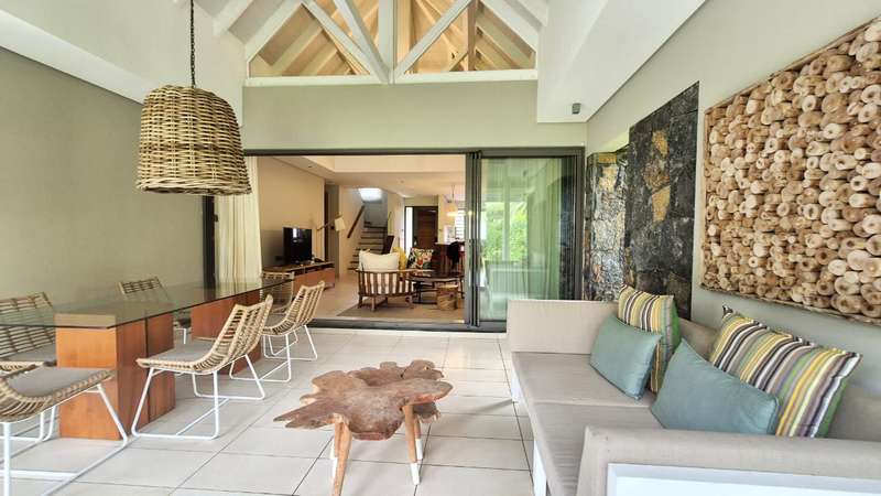 This property boasts convivial living spaces opened onto the tropical garden to make the most of the natural light and ventilation, including three bedrooms, two of which have en-suite bathrooms, a comfortable lounge, and a dining room with an equipped American kitchen. Nestled on a 1,013 m² plot facing the Ernie Els-designed golf course, this splendid 201 m² villa is exquisitely crafted for embracing tropical living. The open-plan living spaces seamlessly connect to the swimming pool and garden through large sliding glass doors, offering a perfect setting to enjoy the superb climate of Mauritius and allowing natural ventilation. This villa is part of Amalthea, a serene pedestrian neighbourhood, where only golf carts are allowed to circulate. A shuttle service provides convenient access to key areas of the estate. Amalthea is also just a few minutes' walk from the center of Anahita, ensuring close proximity to the resort’s amenities, including the spa, restaurants, fitness center, Golf Club, and the boat shuttle to Anahita’s beach on Île aux Cerfs.