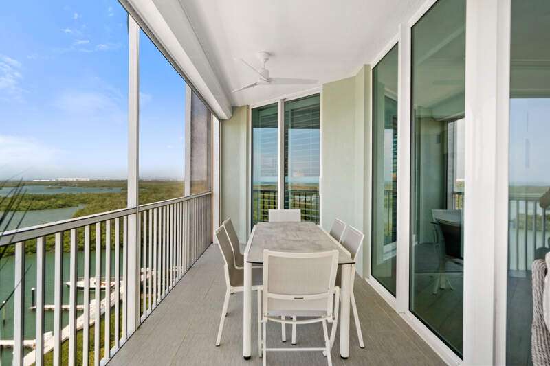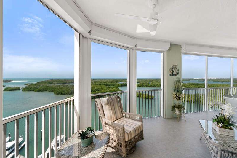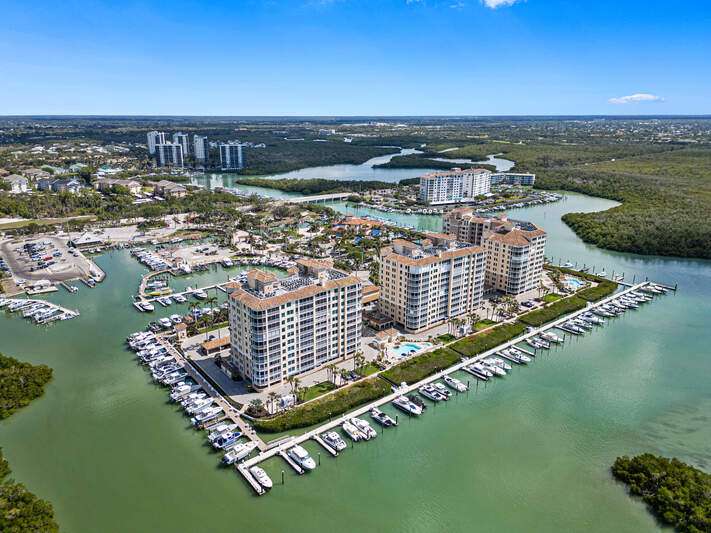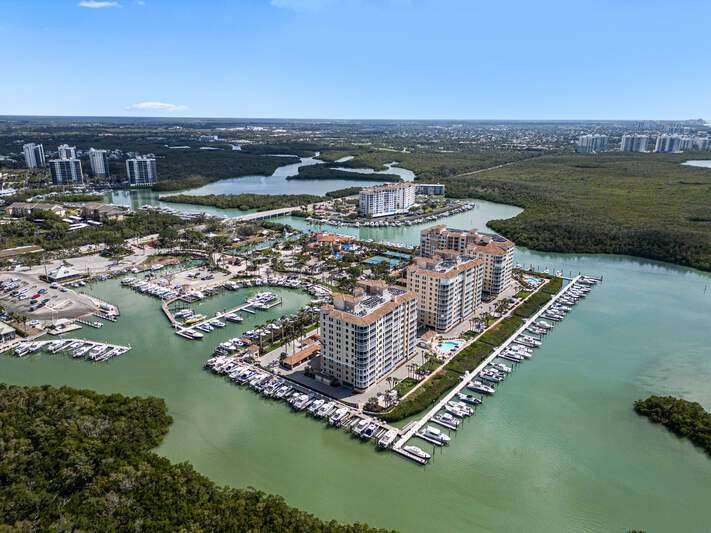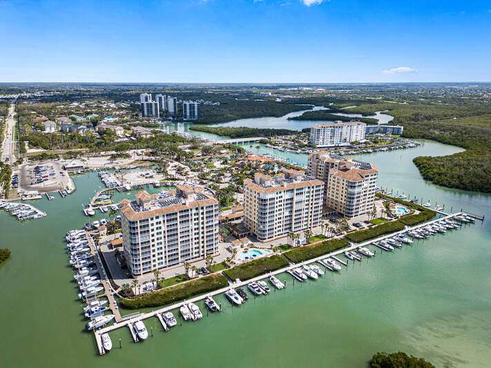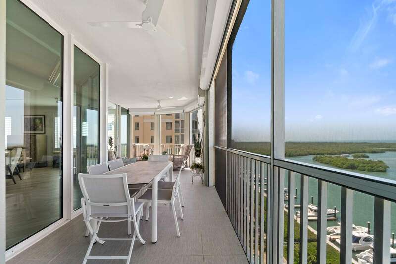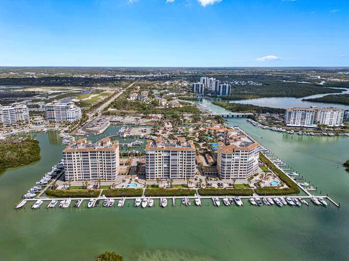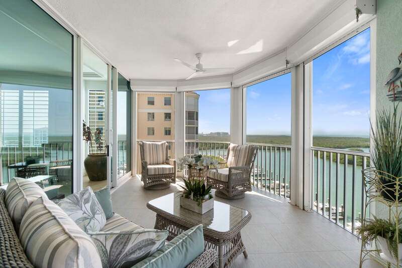 Beautifully remodeled coastal contemporary 9th floor END-UNIT offering spectacular views of the Bay and Gulf, located in the highly sought-after Pelican Isle. Indulge in breathtaking sunsets from the comfort of your spacious waterfront lanai. This property is a true paradise for beach and boating enthusiasts, situated on Wiggins Pass with direct Gulf-access and no bridges. Pelican Isle provides boat slips and lifts for vessels up to 55 feet, as well as a convenient beach shuttle for easy access to the shore (multiple slips currently available!) This unit has been meticulously upgraded with hurricane impact windows, electric hurricane shutters, new HVACs (2018), new water heater (2017), Sonos sound system, water wood and tile flooring, and a light and bright interior. Enjoy extraordinary natural light courtesy of the extra windows, only available in a rare end-unit. This exquisite residence features 2,866 square feet of living space, including an open-concept floor plan, 3 spacious bedrooms, a den, 3.5 bathrooms, and a beautifully remodeled kitchen. The chef's kitchen boasts white quartz waterfall countertops, light cabinetry, Everpure water filtration system, and high-end appliances including a Sub-Zero refrigerator, Wolf wall oven, steam oven and induction cooktop, and Bosch dishwasher. The spacious primary suite offers mesmerizing water views and a spa-like bathroom with dual vanities, a large walk-in shower, and a separate jetted soaking tub. Relax and unwind on your screened-in lanai, where you can enjoy the natural beauty of Southwest Florida, from the diverse wildlife to the dolphins and manatees gliding through the bay. Pelican Isle has a separate private Yacht Club membership available, ranked as one of the Top 50 Platinum Yacht Clubs in the world, granting access to endless boating opportunities, fine dining, fitness facilities, social activities, tennis, pickleball, and bocce courts. Residents also enjoy two pools with spas, a bike storage area, air-conditioned personal storage units, and secure, gated entry with 24/7 camera surveillance. The condo comes with assigned covered parking, guest parking, and a car wash area, as well as a newly renovated lobby and hallways. Located just minutes from Southwest Florida's finest beaches-Vanderbilt Beach and Barefoot Beach-as well as premier shopping and dining at Mercato, Waterside Shops, and Naples' iconic 5th Avenue, this residence offers easy access to both RSW and Naples airports.