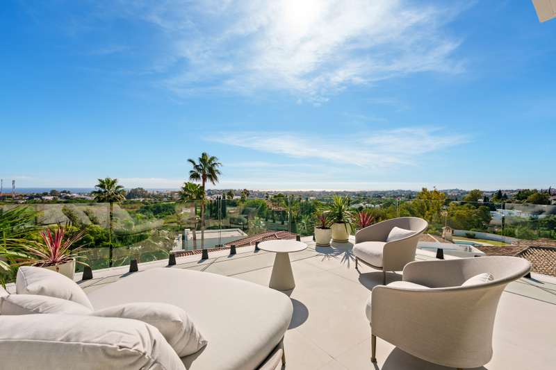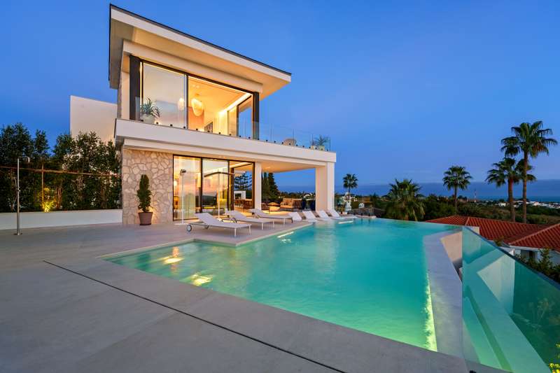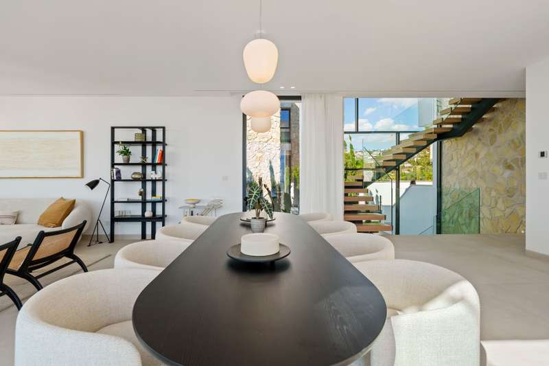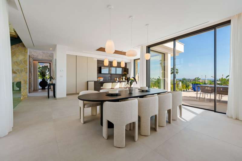 Tresora Villa C is a magnificent contemporary residence within the private Tresora Villas enclave in La Quinta, Marbella. Created by Cogitari Homes, it reflects the perfect harmony between sophisticated architectural design and the serene natural beauty that surrounds it. Set between the Mediterranean Sea and La Concha mountain, this exclusive villa enjoys panoramic views across the golf valley and coastline while offering total privacy and tranquillity. The villa unfolds over three spacious levels and includes five bedrooms and five bathrooms. The main floor features open and fluid living spaces, a designer kitchen, and elegant dining areas that open onto generous terraces and a stunning infinity pool of 51 m². Every space is designed to maximize natural light and frame the exceptional scenery, creating a seamless indoor–outdoor living experience. The upper level hosts the master suite with its private terrace, walk-in dressing area, and luxurious bathroom, alongside additional gues
