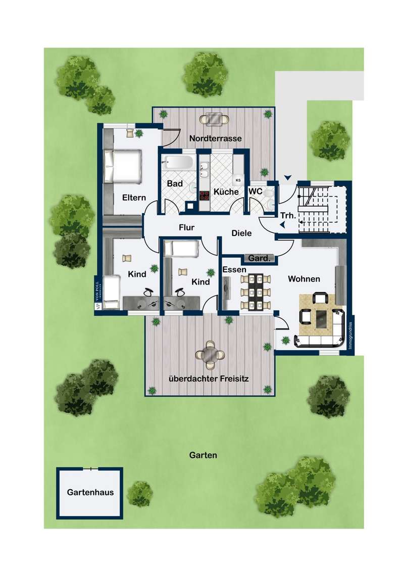 *Semi-detached house with spacious plot in sought-after location This well-kept semi-detached house with a living space of almost 200 m² is situated on a plot of approx. 795 m². It is suitable for multiple generations, for renting out a separate unit or for conversion into a single-family home. There are a total of 8.5 rooms, including six bedrooms, two bathrooms with natural light and two WCs. The first floor apartment also has two large, covered terraces as well as a wonderful south-facing garden that invites you to linger and relax. The apartment on the upper floor has two beautiful, covered balconies. Additional storage space and storage facilities can be found in the basement and attic. The attic could conceivably be converted by raising the roof. The property is in a very well-kept condition and has been continuously modernized and maintained in recent years to meet today's requirements. The heating system was renewed in 2018, as were the terraces and driveways. In 2019, for example, the south-facing terrace was enlarged to approx. 23 m² and a patio cover was added, which is equipped with an electric awning. The façade was repainted in 2022 and high-quality parquet flooring was laid in 2021. New windows were installed in 2004. The outdoor area of the property is spacious and can be used in a variety of ways - as a garden area, play area for children or for socializing at garden parties. Two spacious garages round off the offer. The apartment on the upper floor is currently still rented out. We cordially invite you to view this property and convince yourself of its advantages.