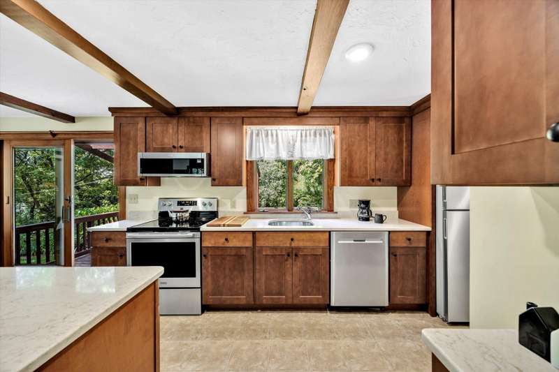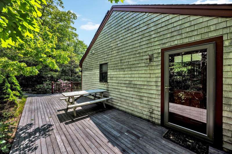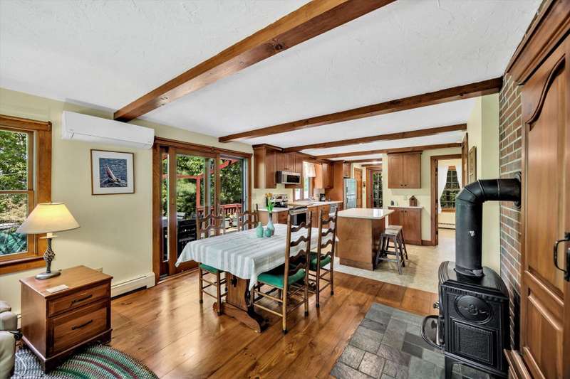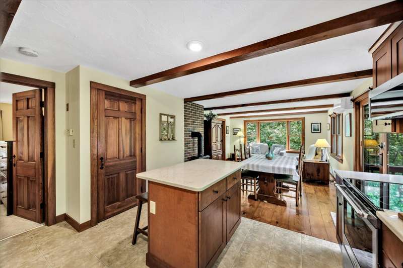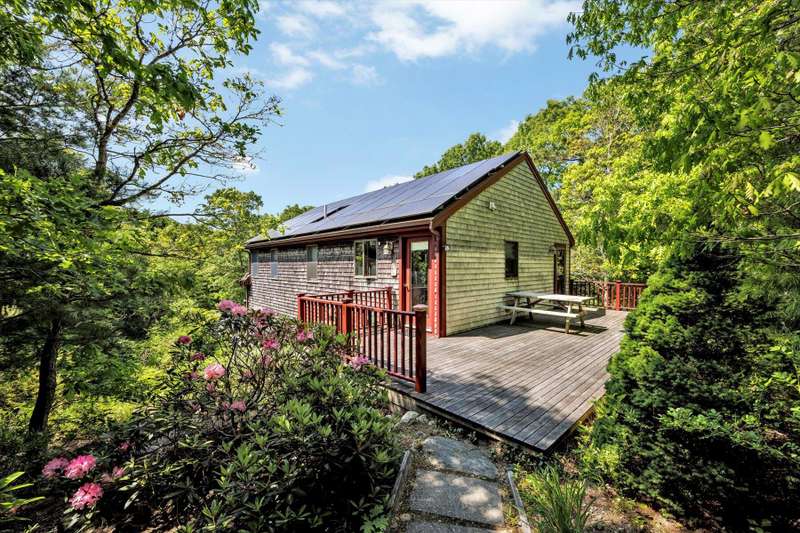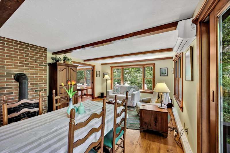 Unique multi structure property with 2.55 acres. Main house is a 3 bed/2 bath with 1893 square feet. Basement has bonus room and dedicated workshop space. 3 wood stoves and 3 mini-splits. Outdoor shower. Second structure is built into the hillside, allowing ground-level access to the 1 bed/ 1 bath 960 square feet dwelling from the upper driveway, with a private lower driveway leading to the heated workshop/garage below. Workshop/garage is 24 x40 with 12 x12 garage door, includes utility room and bath. Owned 10kW solar panels. Perfect for multi-generational living, rental income, a home-based business or future expansion with potential to build more or sell off a portion of land. Close proximity to Cape Cod beaches