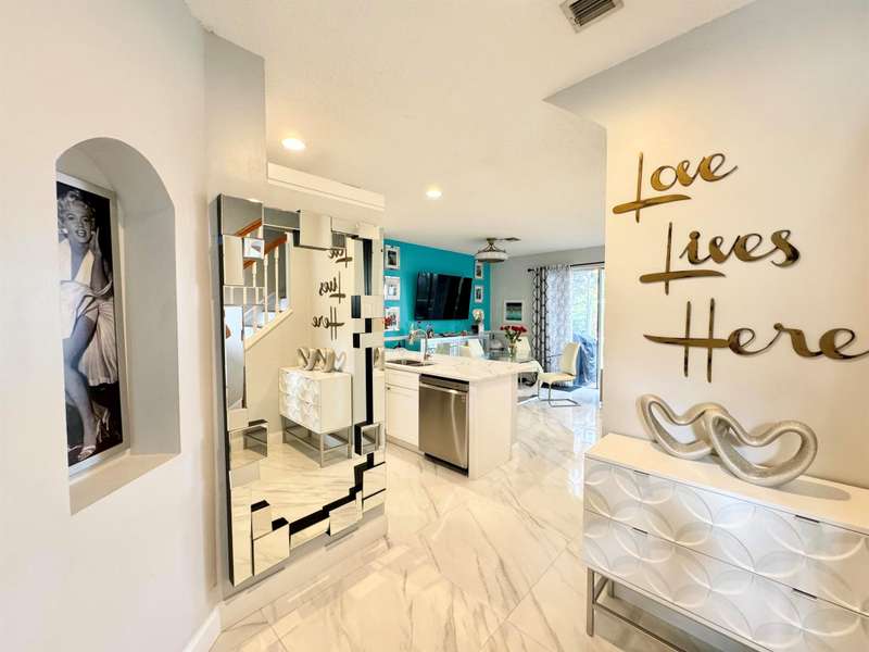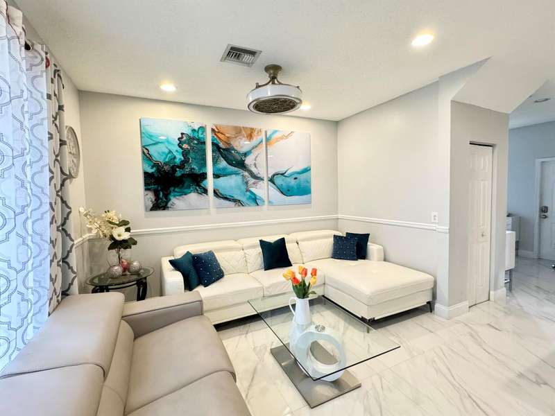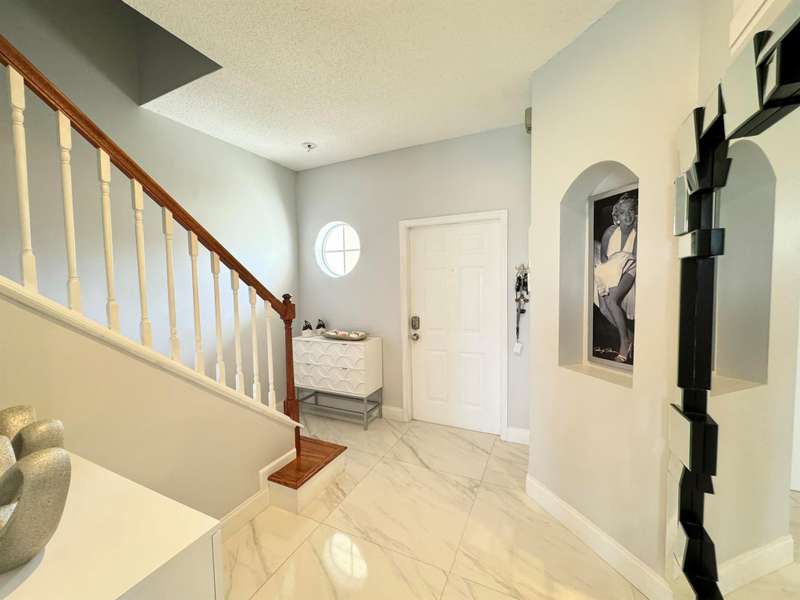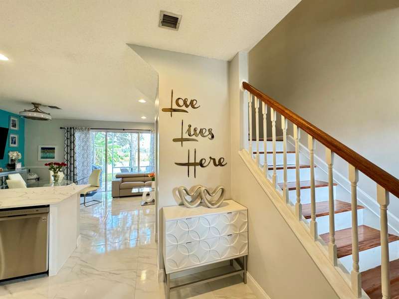 This property is currently rented, making it a perfect investment opportunity. Beautifully renovated 3-bedroom, 2.5-bathroom townhouse w/ a 1-car garage, located by the lake in the desirable gated community of Springs. This townhouse boasts a brand-new roof and A/C system. The kitchen has been upgraded with elegant white wood shaker cabinets, luxurious Calacatta quartz countertops, newer SS appliances, and stylish 30x30 ceramic tiles. New master bathroom. Enjoy serene lake views from both the living room and master bedroom. This community features a swimming pool and is conveniently situated across the street from Park Vista High School and West Boynton Park Recreation Center, offering a playground, ball fields, basketball, tennis courts, volleyball, and a skatepark. A-rated school!!!