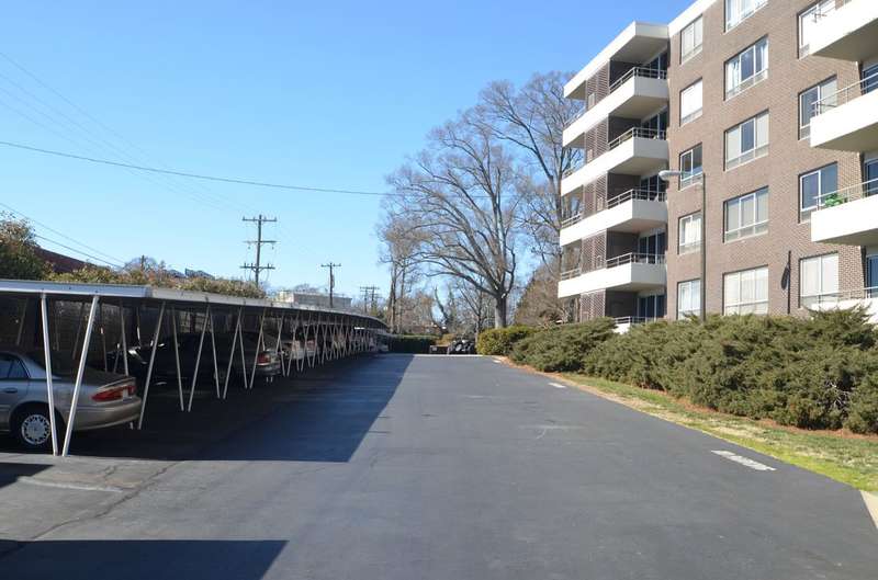 Reduced! Recent modification includes freshly painted walls & new BA vanity. The Kimberlee is a lovely mid-century Coop located between Dilworth & Southpark. This spacious unit has a large entryway w/3 closets, primary BR has wide double windows, 2 closets, plenty of storage space! The Kit includes pantry, refrig conveys. Enjoy wall-to-wall windows in LR w/slide glass door leading to balcony & storage rm. Unit could use some updating & is priced accordingly. Common laundry room is nearby on same floor. Enjoy quiet living, shop & dine nearby, walk across private bridge to Park Rd Shop Center. Amenities include secured locked doors at all entrances, elevators, pool, garden, workout room, Skyview community room on 6th floor includes full kitchen, lending library. Each unit has it's own storage space on 1st floor. A 1-car carport comes w/unit. Addl parking in lot. There is a guest quarters in building for visitors. Monthly HOA dues incl internet, cable, water, property taxes, trash & parking. Cash sale only & homeowner(s) reside in unit, no tenants or subleasing. Closings occur at The Kimberlee by their attorney, Marcia Dixon of Miller Austin Law. Ownership in a co-op is unlike ownership of a condo or townhome. The buyer purchases a share in the ownership of The Kimberlee. The Kimberlee, Inc. provides an approved buyer with a share certificate, not a deed. See Letter to Prospective Shareholders and other documents provided. When approved contract is signed and submitted the buyer completes a Kimberlee application along with $250. Transaction will not be finalized until the board interviews and votes on whether buyer is accepted as a shareholder. Please feel free to discuss with listing agent to confirm all proceedings are understood. There is a 2% capital contribution fee paid to the Kimberlee at time of closing. Lower level parking lot is in flood plain. Current owner has paid the recent assessment.