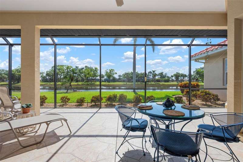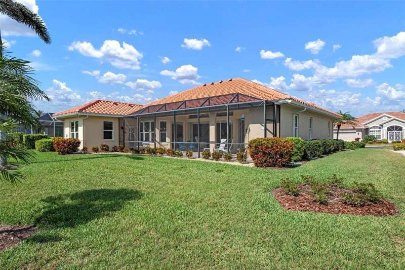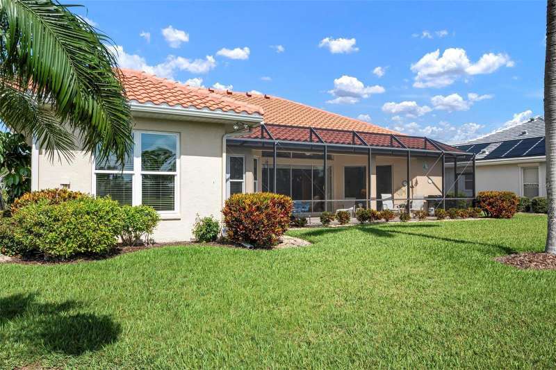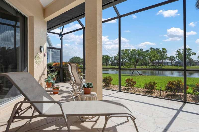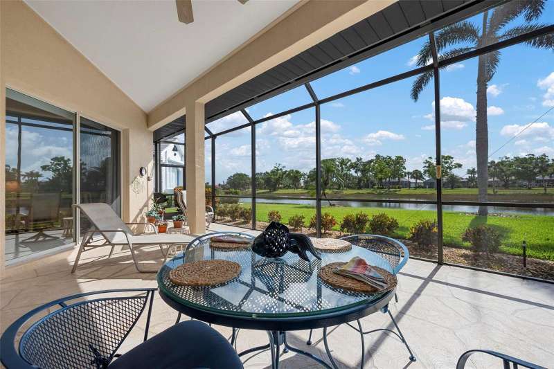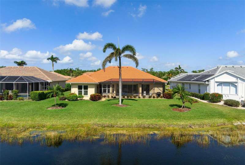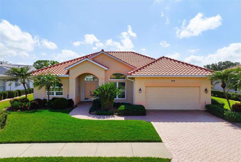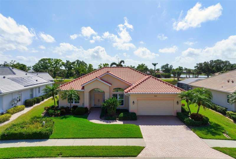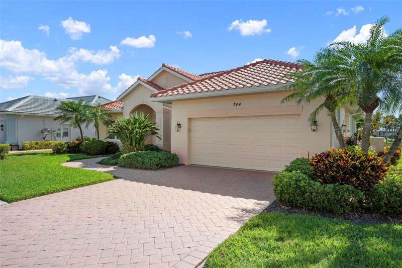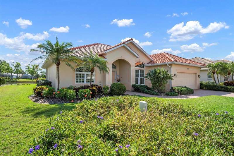 Welcome to 744 Fringed Orchid Trail, a meticulously maintained 3-bedroom, 2-bathroom home nestled in the serene Lakes of Jacaranda community in Venice, Florida. This residence offers a harmonious blend of comfort and elegance, featuring high ceilings that enhance the spaciousness of the living areas. The open floor plan seamlessly connects the living room, dining area, and kitchen, creating an ideal space for both entertaining and everyday living. The master suite serves as a private retreat, complete with a generously sized bedroom, walk-in closet, and an en-suite bathroom featuring dual vanities, a soaking tub, private toilet and a separate shower. Two additional bedrooms and private bath provide ample space for family or guests, and versatile den can serve as a home office or study. Step outside to the screened-in lanai, where you can enjoy Florida's beautiful weather year-round. The outdoor space overlooks a lake and a beautifully landscaped yard, offering a tranquil setting for relaxation or gathering. Residents of the Lakes of Jacaranda community enjoy access to a range of amenities, including a clubhouse, large swimming pool, tennis and pickleball courts, and scenic walking and biking paths that wind around the community's sparkling lakes. The neighborhood is conveniently located near world-renowned golf courses, pristine Gulf beaches, and the charming shops and restaurants of Historic Venice. House has a new: Roof, Epoxy Floor in Garage, Impact Resistant Windows all installed in 2023.
