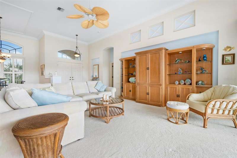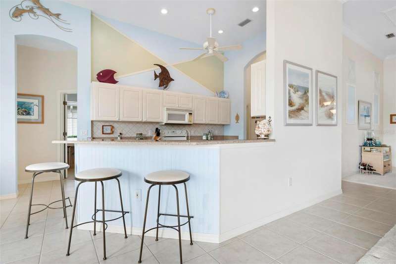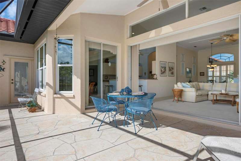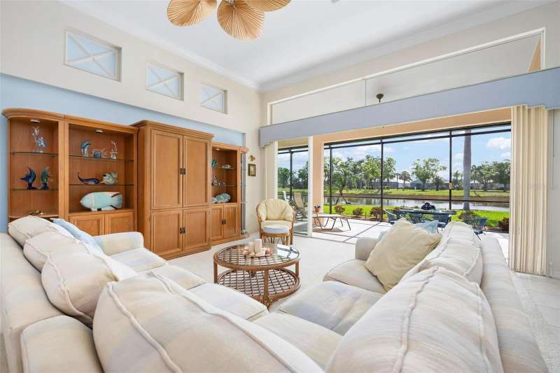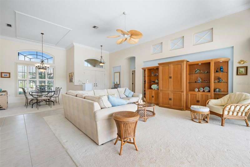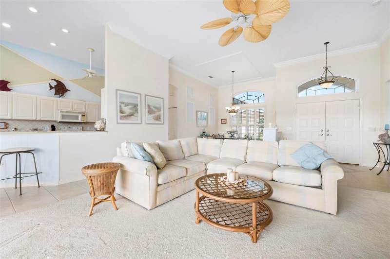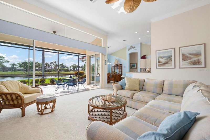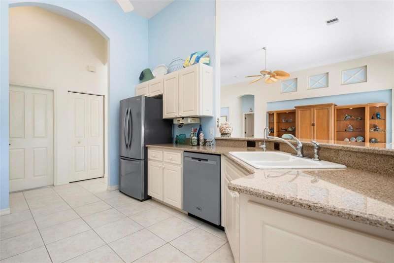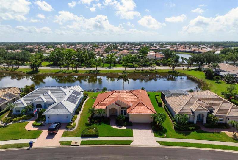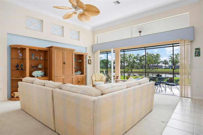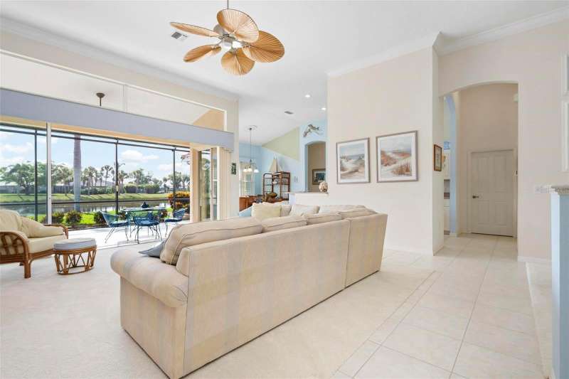 Welcome to 744 Fringed Orchid Trail, a meticulously maintained 3-bedroom, 2-bathroom home nestled in the serene Lakes of Jacaranda community in Venice, Florida. This residence offers a harmonious blend of comfort and elegance, featuring high ceilings that enhance the spaciousness of the living areas. The open floor plan seamlessly connects the living room, dining area, and kitchen, creating an ideal space for both entertaining and everyday living. The master suite serves as a private retreat, complete with a generously sized bedroom, walk-in closet, and an en-suite bathroom featuring dual vanities, a soaking tub, private toilet and a separate shower. Two additional bedrooms and private bath provide ample space for family or guests, and versatile den can serve as a home office or study. Step outside to the screened-in lanai, where you can enjoy Florida's beautiful weather year-round. The outdoor space overlooks a lake and a beautifully landscaped yard, offering a tranquil setting for relaxation or gathering. Residents of the Lakes of Jacaranda community enjoy access to a range of amenities, including a clubhouse, large swimming pool, tennis and pickleball courts, and scenic walking and biking paths that wind around the community's sparkling lakes. The neighborhood is conveniently located near world-renowned golf courses, pristine Gulf beaches, and the charming shops and restaurants of Historic Venice. House has a new: Roof, Epoxy Floor in Garage, Impact Resistant Windows all installed in 2023.