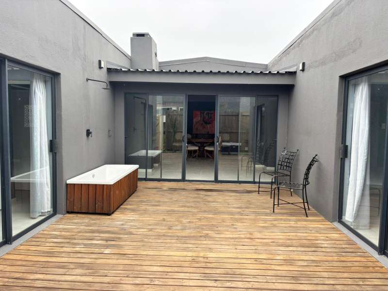 What a well thought out renovation this is .... Private Ideal starter/retirement home Courtyard provides the opportunity to extend living/entertainment area which is completely private 2/3 bedrooms open onto courtyard Main en suite with dressing table/desk Kitchen has slider to east with a discreetly positioned store for those unsightly necessities; rectangular island on casters with an Oregon pine top; space for a double door fridge; piped for washing machine & dishwasher Living area is bright and sunny with the corner windows having been treated with vinyl frosting/window art by local company Window Art Indoor jetmaster built-in braai The second storage space can easily be converted to a study/hobby room. An open canvas with opportunity .... Don't hesitate, make that appointment