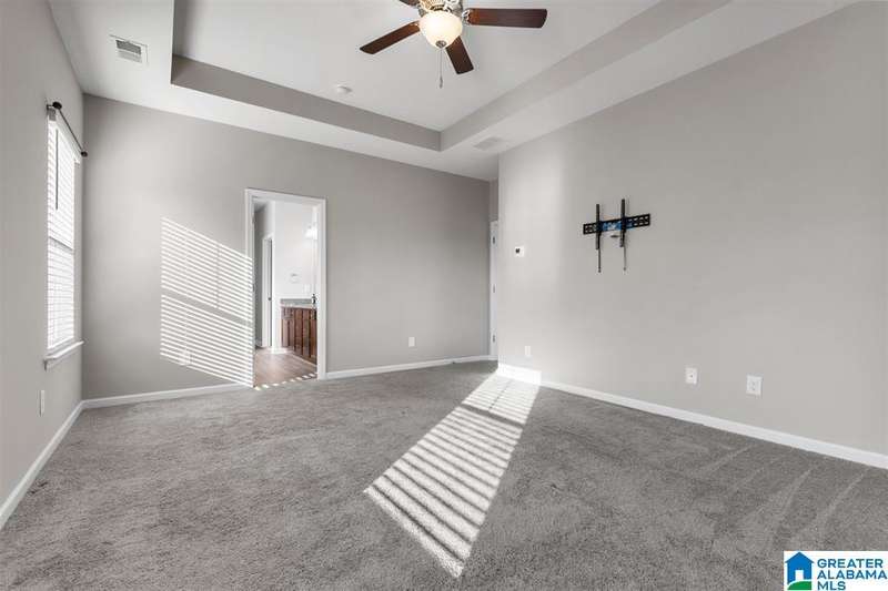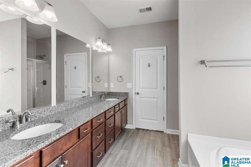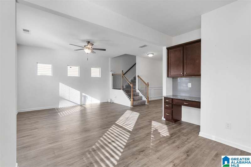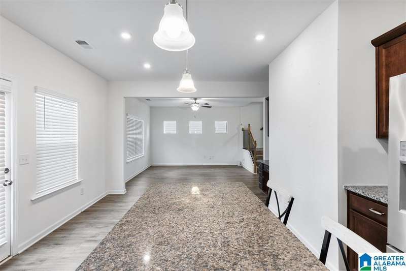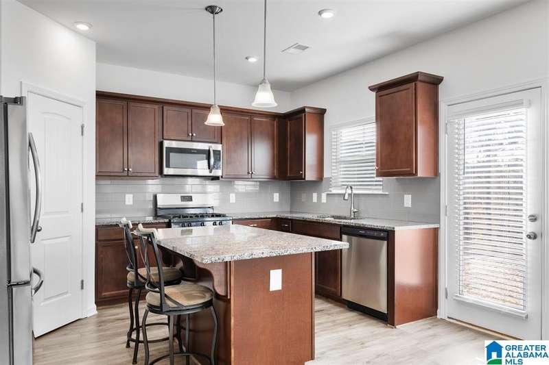 UPGRADES INCLUDE: HARDWOOD LAMINATE THROUGHOUT MAIN LEVEL UPGRADED GRANITE IN KITCHEN AND BATHROOMS WITH TILE BACKSPLASK ISLAND IN KITCHEN CHAIR RAIL IN FOYER DRAWER STACK AND DECORATIVE PRIVACY WINDOW IN MASTER BATH Sellers loss is your gain in this better than new home with wonderful seating area in the backyard for entertaining and backs up to the woods for privacy. Entertainers dream with open floor plan. All bedrooms and Laundry upstairs so no lugging laundry up and down the stairs. Comes with French door stainless refrigerator