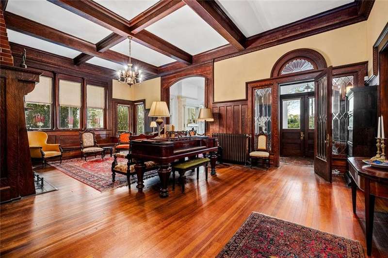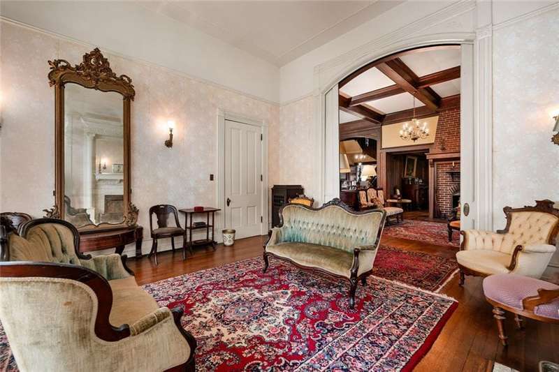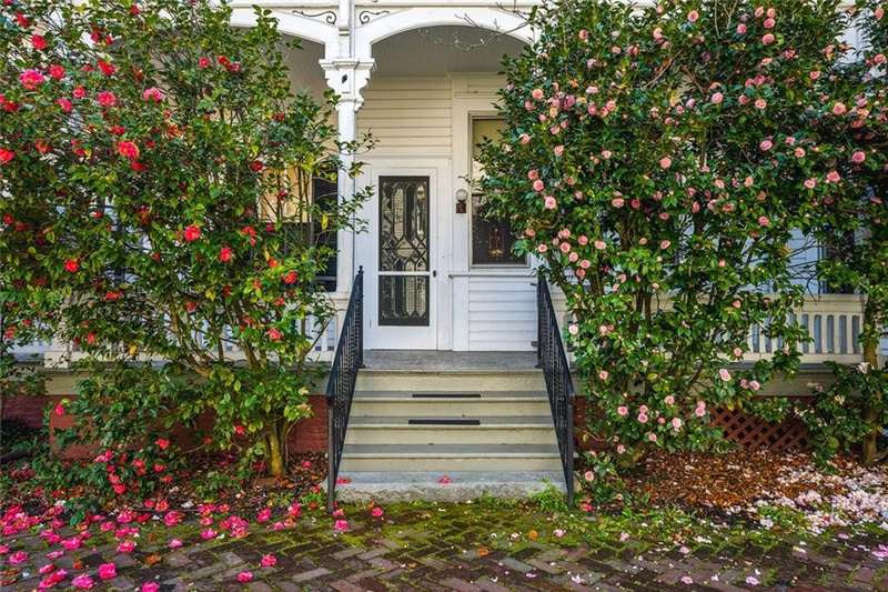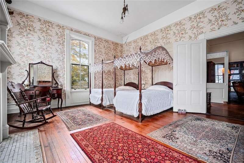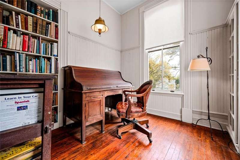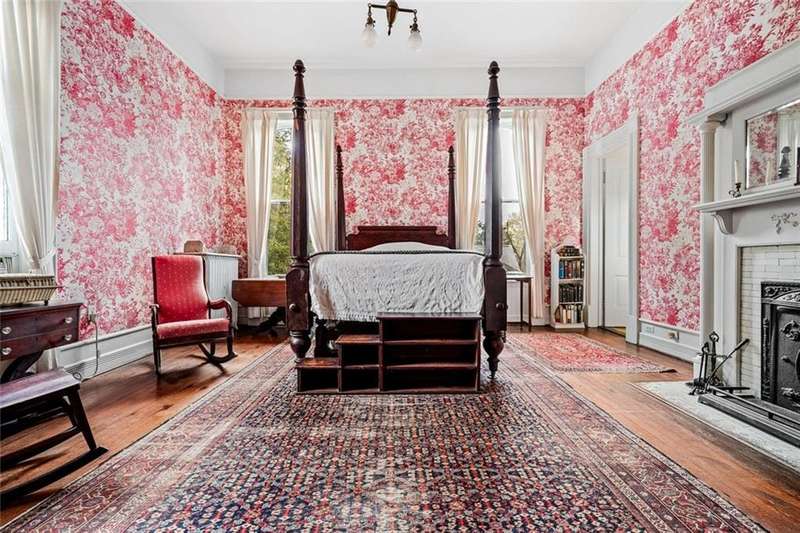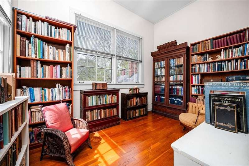 Welcome to Tower Oaks, the grandest Victorian home in Historic Marietta, now offered for sale! This distinguished Italian-style villa, built circa 1882, is the only residence of its kind in the city. With 5 bedrooms, 4.5 bathrooms, and impeccable architectural details, this historic estate offers a rare opportunity to own a piece of Marietta's rich heritage. The stately entry hall features leaded glass doors and sidelights that fill the space with natural light, illuminating the intricate woodwork and gleaming hardwood floors that extend throughout the home. The main living area boasts a magnificent brick fireplace, one of eight fireplaces in this home. Quarter-sawn oak paneling, egg-and-dart molding, and built-in window seats and bookcases add character and elegance. A striking feature of Tower Oaks is the built-in grandfather clock, seamlessly crafted by Judge Samuel Hale Sibley using repurposed wood and Civil War artifacts, including cannonballs and a bayonet. This unique piece of history reflects the home's timeless grandeur. Pocket doors lead from the living room to the charming parlor, complete with a bay window and inviting window seat. The 13-foot ceilings enhance the sense of space and sophistication. The expansive dining room is ideal for entertaining, with large windows, a stunning canvas frieze capturing Kennesaw Mountain, and a built-in sideboard offering ample storage. The breakfast room connects to the kitchen with a convenient passthrough counter. Nearby, a spacious utility room with a half-bathroom serves as a versatile space for laundry, flower arranging, or storage. Enjoy your morning coffee on the sun porch, surrounded by windows and bathed in natural light. Two spacious bedrooms and adjoining bathrooms with vintage marble sinks are located on the main level. Ascend the solid walnut staircase to the upper floor, where you'll find a dedicated office, three additional bedrooms, two full bathrooms, and a versatile great hall. Two bonus rooms offer the perfect opportunity for a home office, nursery, or extra guest space. Outdoor surroundings are equally impressive. Relax on the wraparound porches and admire the lush boxwoods, vibrant flower gardens, scuppernong arbor, and camellia bushes. The expansive front and back yards are ideal for hosting gatherings or enjoying peaceful evenings. The house has driveway access from both Kennesaw Avenue and Maple Avenue, where the entrance is flanked by a picturesque stone wall. A circular driveway provides ample parking in the back. A massive historic barn features two garage stalls, a large workshop, and a loft for additional storage. Located just blocks from the Historic Marietta Square, 285 Kennesaw Avenue offers convenient access to charming shops, local dining, and cultural attractions. This iconic Italian-style villa is more than just a home - it's a living piece of Marietta's history. Schedule your private tour today and experience the timeless elegance of Tower Oaks!