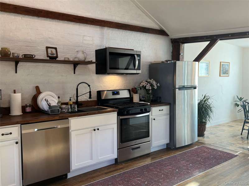 Experience a refined urban oasis in a coveted neighborhood in the Historic district of Catskill, across from The Foreland Art Center and Willa's Bakery. This meticulously updated apartment features a seamless, flowing floor plan and luxurious finishes throughout, including the original wide-plank hardwood floors and a bathroom with built-in washer and dryer. The open kitchen boasts butcher block countertops and top-of-the-line appliances. Enjoy your morning coffee or an evening cocktail overlooking the tree-lined streets of this hip, walkable community. The primary bedroom is large and peaceful, overlooks a private wooded and grass area. The second bedroom looks out to Main Street with lots of action to observe. Hudson is 10 minutes away with a train station that has direct rains into NYC, there are 2 dog parks both within 5 mins walk, and the Dutchman's Landing boat launch area and park is a 2 min drive or 10 minute walk. Please call 631-317-9282 to schedule a showing.