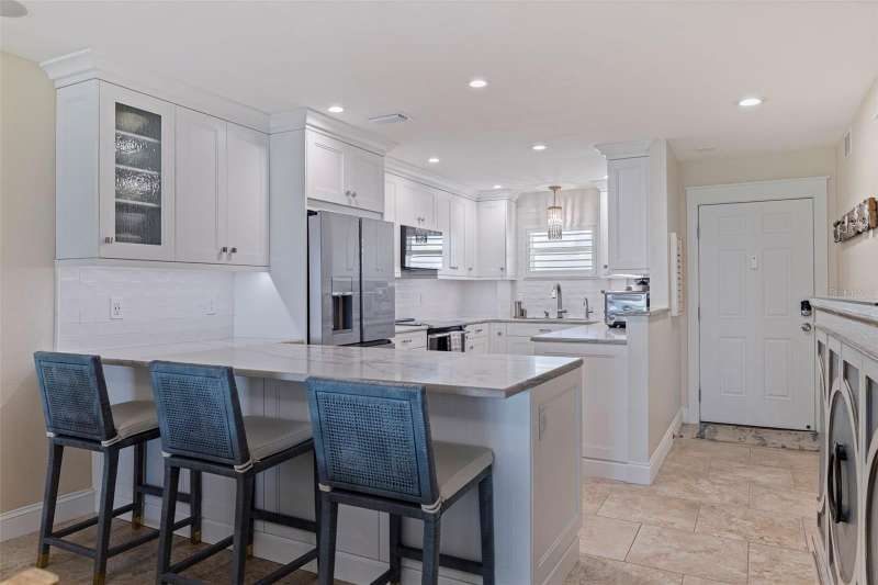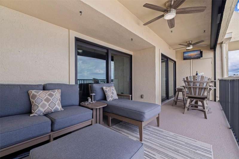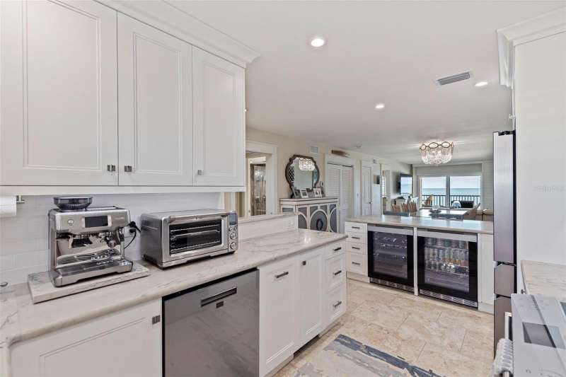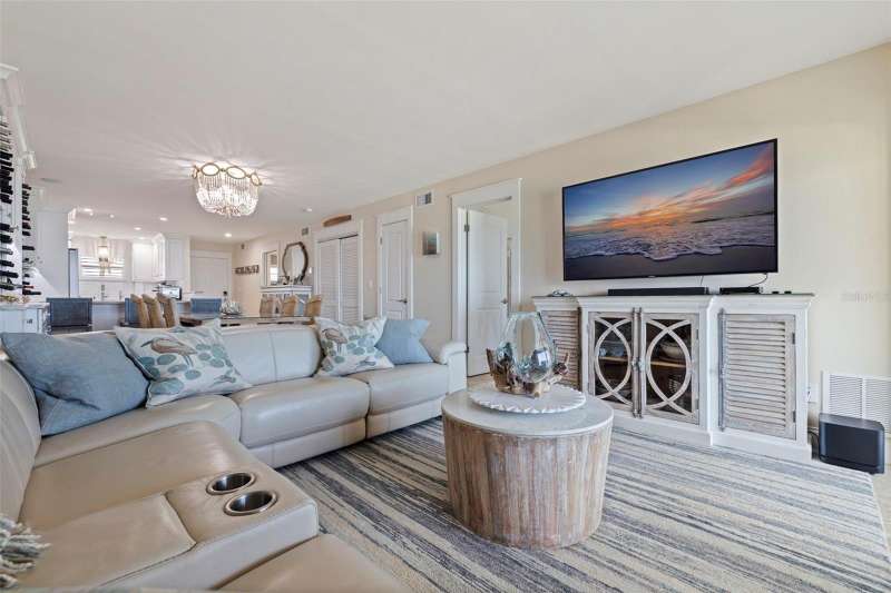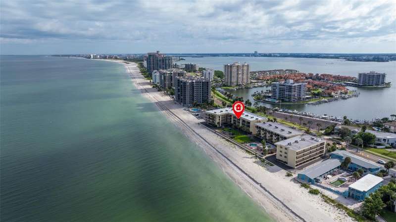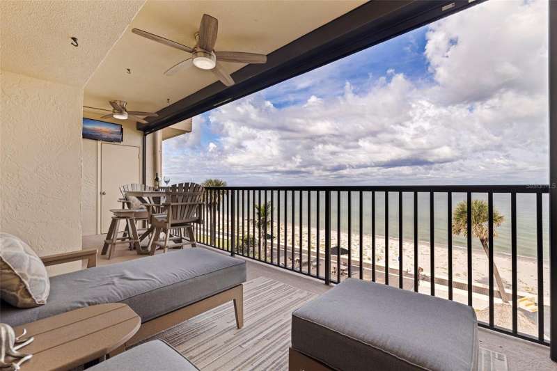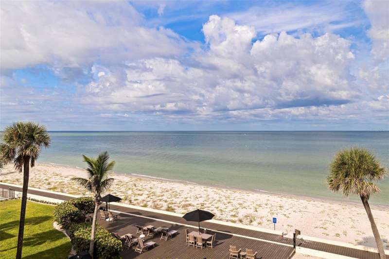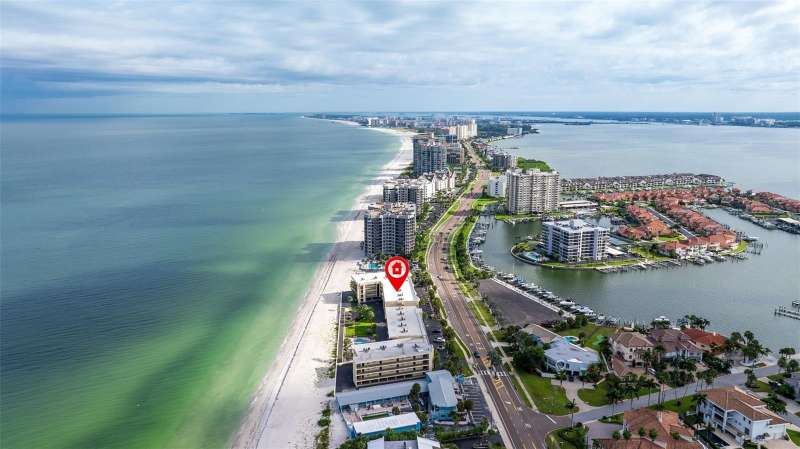 Under contract-accepting backup offers. Welcome to a Coastal Chic Penthouse Condo with Unmatched Views & Premium Upgrades. Experience elevated coastal living in this fully renovated penthouse condominium located in the upscale boutique community of Belleair Beach. With private beach access and sweeping water views from every room, this residence delivers both tranquility and luxury. Designer furnishings included in this 2 bedroom, 2 bath residence featuring an open, airy layout that that flows seamlessly onto an oversized Gulf Front balcony. Perfect for relaxing evenings and entertaining guests while soaking in unobstructed waterfront views. The kitchen window frames sunrise views, while the living room and balcony showcase stunning sunsets and frequent dolphin and manatee sightings. This unit sold turnkey. Gourmet kitchen features Calacattta Hard Marble, Kitchen Craft custom cabinetry, GE Cafe Platinum Glass appliances, Scottsman ice-maker, wine refrigerator & beverage refrigerator. Built-In Buffet cabinet in dining area includes wine storage. Living Room features wall of sliding doors with Plantaton Shutters that open to the Gulf front balcony. Spacious Primary bedroom also has sliding doors with plantation shutters that open to the Gulf front balcony. Ensuite bath has double vanity with Bianca Venato quartzite top. Large walk-in tile shower & Kohler all-in-one Bidet toilet. Linen storage cabinetry & walk-in closet. Guest bedroom also has walk-in closet with both bedroom closets organized with Closets By Design, Guest bath also features a walk-in tile shower. Elegant designer lighting throughout. Hurricane windows & sliding doors. Magnatrac Defender series Cat 5 hurricane screen that doubles as shade/screened enclosure. Many more updates. See attaqched list. Walk to great restaurants & shops. A short drive to Tampa & the airport plus all of the sports venues of our championship teams. START LIVING THE FLORIDA BEACH LIFESTYLE TODAY!! Buyer to verify room dimensions. See Video. Call to make an appointment for your private viewing today!