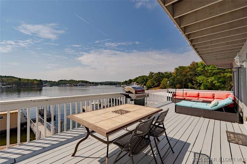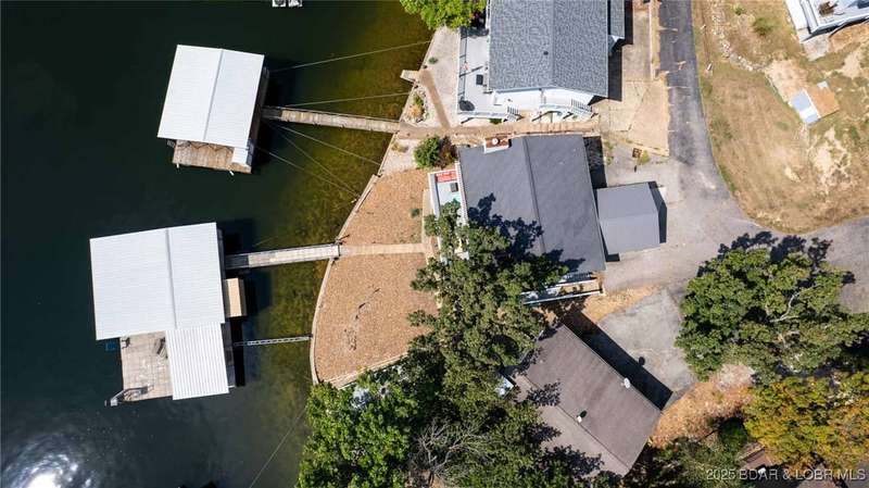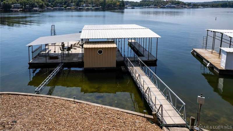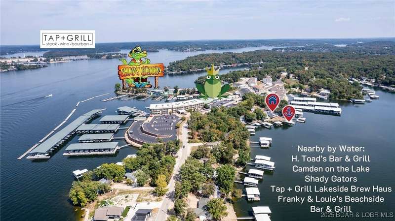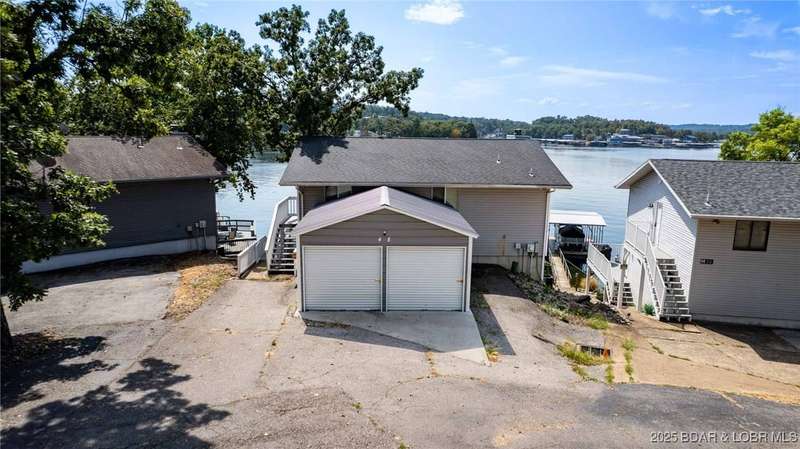 This lakefront home is the perfect blend of vacation retreat and proven investment in one of the most desirable locations at Lake of the Ozarks. With 4 bedrooms, 2.5 baths, and over 2,100 sq. ft., it comes sold fully turn-key. A newly added 2-car garage provides plenty of space to store all your lake toys.Outside, enjoy your oversized deep-water dock, tucked into a calm cove ideal for swimming, fishing, and water sports. The location is unbeatable. Just around the corner from Shady Gators and Camden on the Lake, where live music and lakefront dining are always on the agenda. Concerned about noise? Not to worry, this home sits tucked back on the hillside, offering the peace and quiet you want while keeping you close to the action.Best of all, this home is also a proven nightly rental, generating $40,000$60,000 in net annual income. That means you can enjoy it as a private retreat for family and friends and let it work as an income-producing property when youre away.