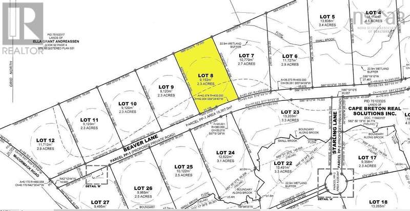 Location Description: Coming from Port Hawkesbury turn right onto NS-104 Hwy, turn left onto Lower River Road, turn left onto Beaver Lane, watch for sign, Lot 8, next to civic #100