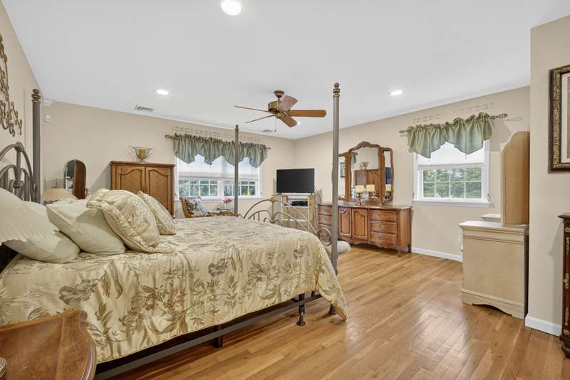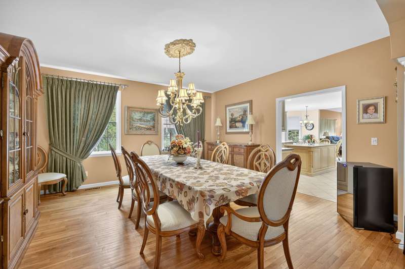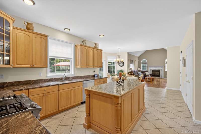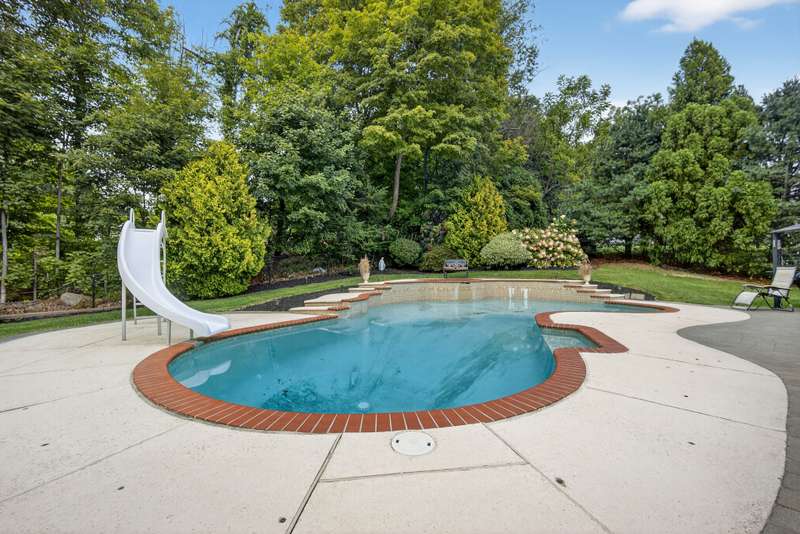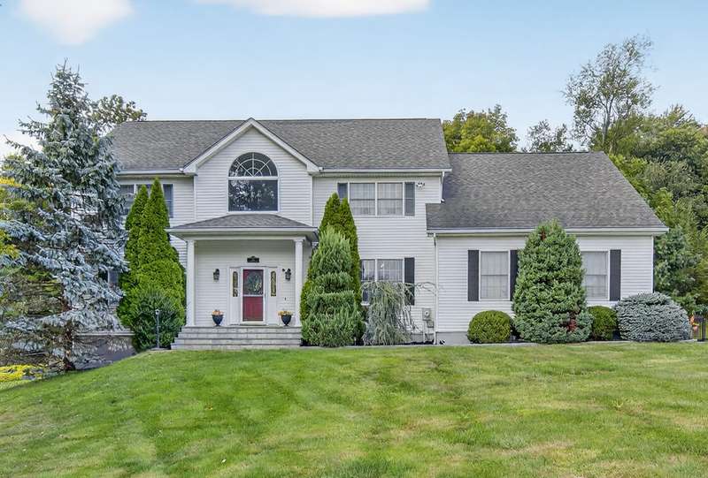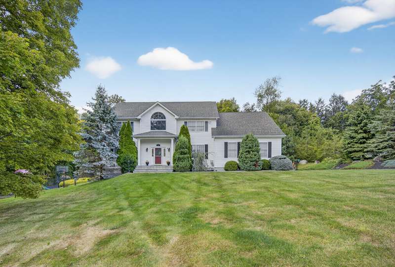 Welcome to 14 Meadow Crest Drive in the Mahopac school district, a stunning 4-bedroom Colonial that blends elegance, comfort, and lifestyle amenities just minutes from the Taconic Parkway. Step into the impressive two-story entryway highlighted by a retractable chandelier and continue into the spacious family room with cathedral ceilings, perfect for gatherings. Hardwood floors run throughout the home, adding warmth and character, while a versatile first floor flex space offers the ideal setting for a home office or playroom. The heart of the home is the large, sun-filled kitchen featuring a center island, perfect for cooking, entertaining, and everyday living. A convenient laundry room/mudroom are located right off the garage, keeping the household organized and functional. The main bedroom suite features two closets, including a walk-in, along with a private bath, while three additional generously sized bedrooms provide plenty of space for family or guests. Bedrooms are equipped with California Closet organizers. Outside, enjoy resort-style living with a gunite free-form pool with slide and jacuzzi, expanded patio area and a basketball court that can double as a pickleball court with a little TLC. Cul-de-sac living with a prime location close to local shops, dining, schools, and the Taconic Parkway, this gem is ready to welcome its next owner.