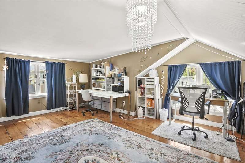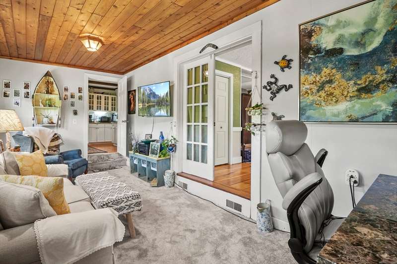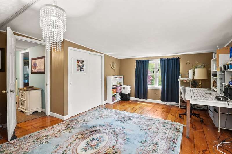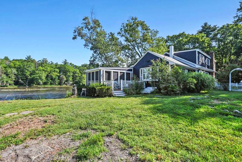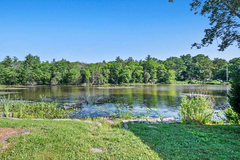 Welcome to your staycation home! Price improvement on this truly one-of-a-kind property, offering amazing value. Charming Cape Cod-style home set on 17 acres, including Skeeter Mill Pond — a private 3-acre pond for year-round enjoyment, privacy & breathtaking views. Canoe, fish, kayak, or ice skate right from your backyard and soak in the natural beauty every season. Inside, exposed beams highlight the open-concept living/dining/kitchen, anchored by a floor-to-ceiling stone fireplace & brick arch w/ gas stove. The kitchen offers wood counters & cabinetry, while the 1st-fl in-law/au-suite provides versatile space with pond views — perfect for extended family or Airbnb as a mortgage helper. Relax in the sunroom or new screened porch overlooking the water. Upstairs includes 3 add’l bedrooms. Town water/sewer, central air, wood floors, ample parking & close to trains, BSU, town center & major routes (495/24/140/44). Schedule your showing Today!