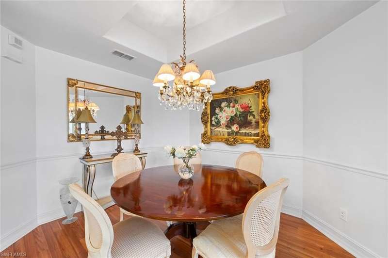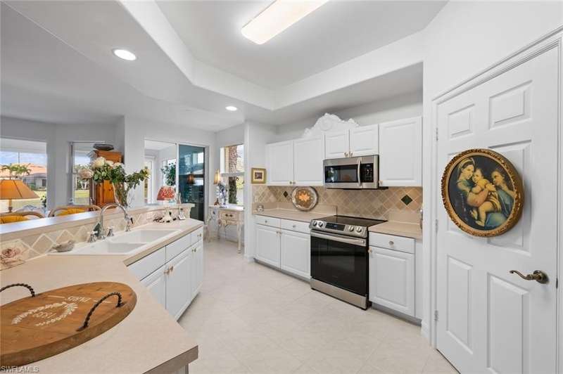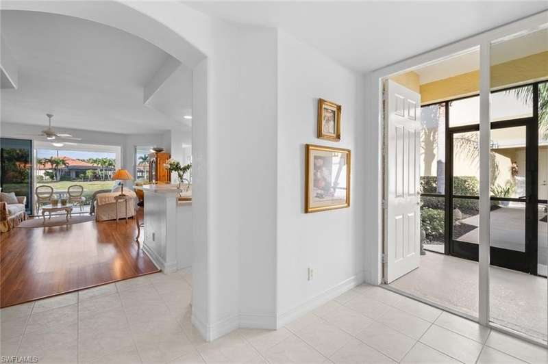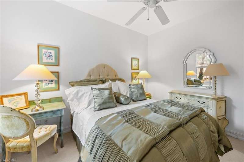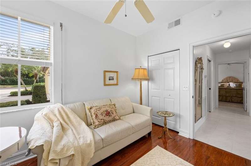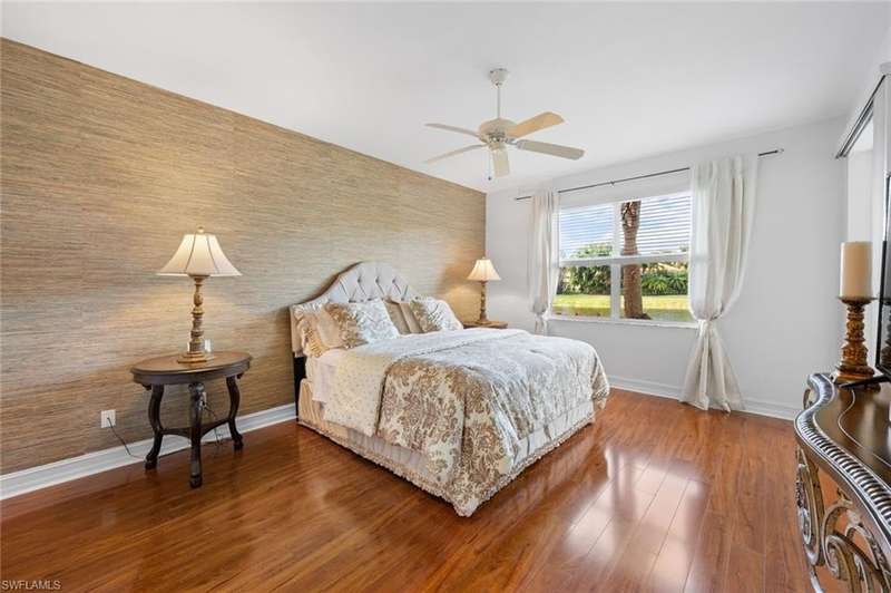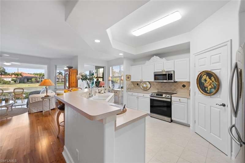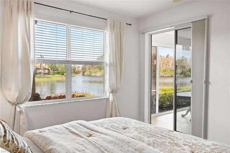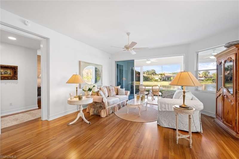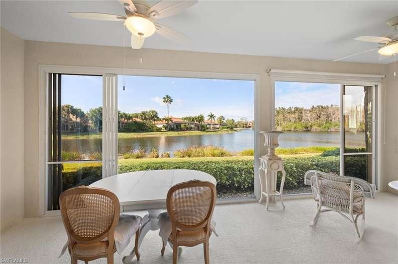 No waitlist for golf membership at this totally renovated Arnold Palmer designed 18 hole golf course! Wildcat Run Golf and Country Club is a smaller, intimate community where friends become family. There is a total of 449 residences, with a combination of single family homes, stand alone villas, attached villas and condos. For those who do not golf, as well as the golfers, there is tennis, bocce, pickle ball, cornhole toss, cards, Mahjong, book clubs and a fabulous fitness center with a full-time fitness director. The main clubhouse, grill room and pro-shop have all been renovated. Even the parking lot expansion is complete. There is a community pool for the exclusive use of owners at Cypress Cove and Wildcat Cove. Those owners all pay to maintain the pool and its parking lot. Another great place to meet your neighbors. This first floor unit with three bedrooms and two full baths has been meticulously cared for. The flooring in the main living area is engineered wood while the primary bedroom and third bedroom (den) have laminated wood flooring. The dining room chandelier and a piece of wooden art above the kitchen cabinets are not conveying with the sale of this property, but furnishings are negotiable. This unit has plexiglass sliders on the lanai giving you another 235 sq ft of living space. The screens on the lanai were replaced with picture window screens for unobstructed views down the lake. Keep in mind there are electric and manual shutters. You will love the location. A short drive to the airport, FGCU, University Shoppes, Hertz Arena, Miromar Outlets and two other major shopping venues are a short distance away. The South County Regional Library is scheduled to reopen in late 2025 after extensive renovations and that is fairly close also!!