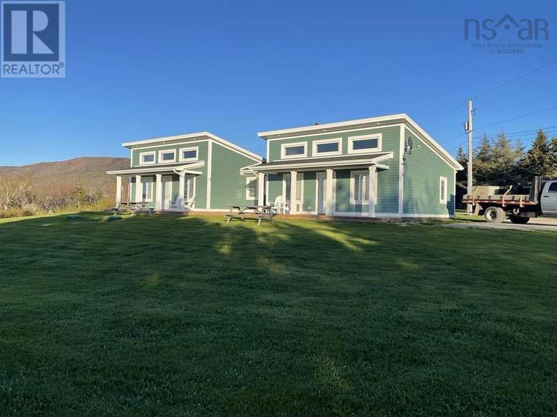 Welcome to Bayview Chalets, situated in one of Nova Scotias most breathtaking coastal settings, this rare offering includes six executive style 2-bedroom cottages with spectacular ocean and harbor views as well as iconic sunsets over the horizon. Located in the heart of Acadian culture, these cottagesSandy Feet, Anchors Away, Farmstead, L'Acadie, Ocean breeze, and The Highlandsoffer a blend of charm, comfort, and income potential. Each cottage is equipped with its own stacked washer/dryer unit and is thoughtfully designed for both short-term and long-term rentals. Its cape cod wood siding and PVC trim offers low maintenance for many years to come. Situated on three separate parcels of land, each containing a well-maintained duplex, this property is flexible to suit a variety of investment strategies. Continue the thriving short-term rental business, transition to long-term leases, or explore owner-occupied options: live in one unit while generating income from the remaining five. Alternatively, sell one or two of the duplex parcels as stand-alone investments. The location is unbeatablejust a five-minute drive from the beautiful Cheticamp Beach, Le Portage Golf Course, the famed Skyline Trail, and the local favorite Gypsum Mine Trail and swimming hole. Whether you're an investor seeking a turnkey rental business or a visionary buyer looking for a stunning home base with income potential, this property delivers on all fronts. (id:2494)