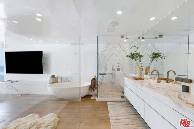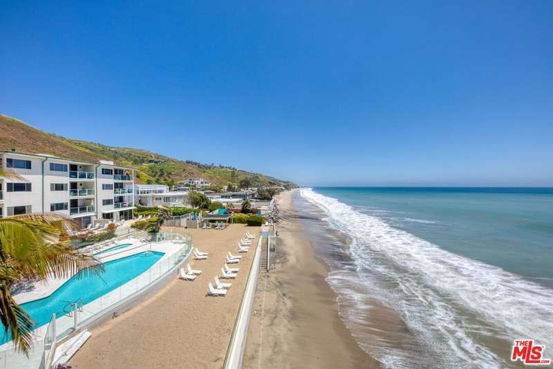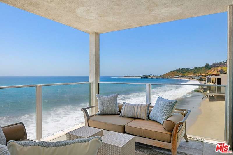 Discover the ultimate in coastal sophistication at this stunning oceanfront residence on Carbon Beach, located within Malibu's exclusive "Outrigger" complex. Offering private access to a sandy beach, along with a pool and spa reserved solely for residents, this home delivers true resort-style living just steps from Malibu's most iconic spots, including Nobu, Soho House, and the Malibu Pier. Expansive floor-to-ceiling glass walls capture uninterrupted, panoramic views of the ocean and coastline from every room even the spa-like primary bathroom. Fall asleep to the rhythm of the waves and wake up to breathtaking sunsets from the comfort of your bed. This sun-drenched two-bedroom, two-bath retreat features custom French white oak flooring and high-end finishes throughout. Designed for effortless indoor-outdoor living, the open layout flows seamlessly onto a private patio perfect for quiet mornings or warm summer evenings by the sea.