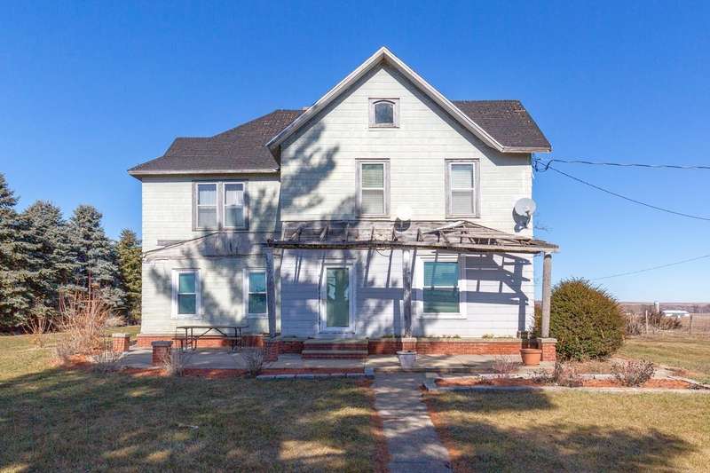 Located just a few miles west of Aplington, 4 miles from Hwy. 20 and on a hard surface road, this acreage offers lots of room to have a garden, a few animals or just enjoy the country. This two story home offers over 2,900 sq. ft. of living area with a large great room, wood burning fireplace and original open staircase. The kitchen and adjoining breakfast nook have ample cabinets and storage space. There are two main floor bedrooms and bath. The second story has five bedrooms. Built in 1998, there is a 24 x 32 heated detached garage.