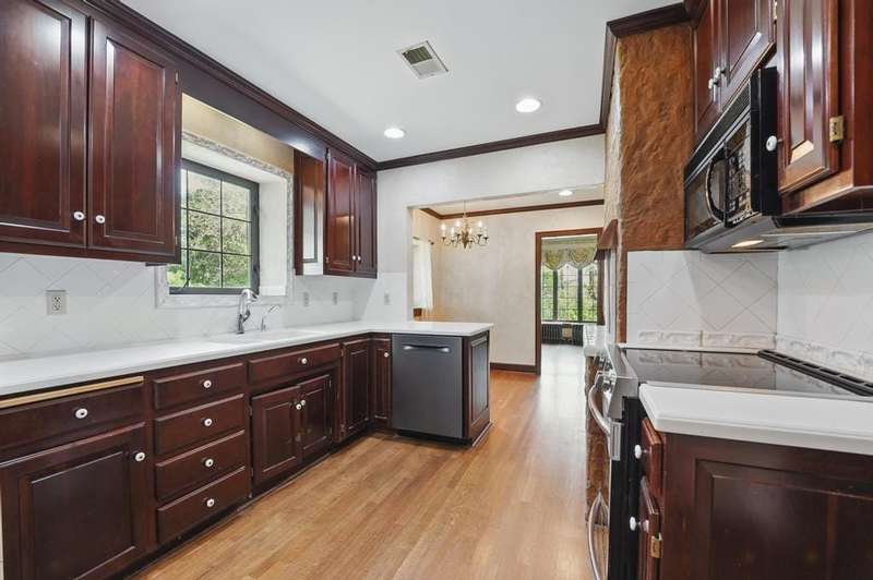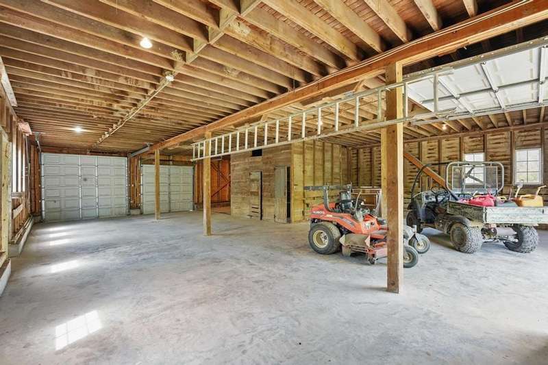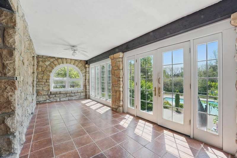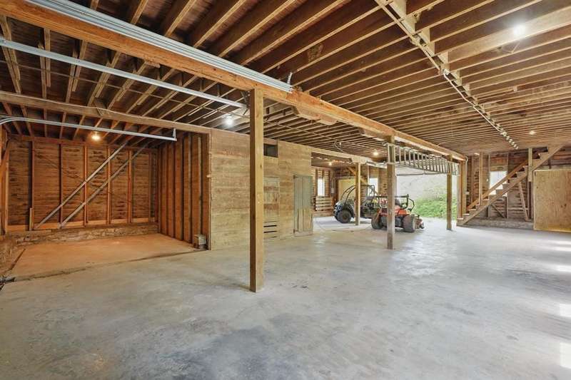 Incredible opportunity for 7+ acre property close to everything! Private, gated drive leads to incredible stone home built around 1935, gorgeous barn - all has been meticulously maintained & updated over the years. Home has a large 2 car garage with heated floors, insulated doors, 1/2 bath & flex room that would be a great office. Unfinished attic space above garage. Sunny breezeway attaches garage to the home. Front entry of home offers heavy, arched front door, opens to tile entry w/coat closets. The open plan with old world charm is an incredible entertaining space. Large formal dining room w/unique vaulted ceiling, wood floor is open to the great room with barrel vaulted ceiling, stunning stone fireplace, French doors to unbelievable porch that runs the length of the room. The porch has windows in the arched openings overlooking the beautiful inground pool & private yard. The kitchen was updated with wall of pantry storage, solid surface counters, cozy breakfast room. There is a cute powder room for guests in the hall between kitchen & great room. The primary suite is a true retreat with large sitting room, huge walk-in closet, laundry hookups & lovely bedroom w/private luxury bath. Bathroom has large shower, jetted tub, double vanity. A 2nd bedroom on this level was used as a home office. There is a private suite with full bath upstairs. Door to unfinished attic space could easily be finished for additional bedroom or family room space. Lower level is unfinished, 8' ceilings, a couple of rooms, including one with exterior walkout/walkup door & stone fireplace, there is also daylight/egress window in one of the rooms. 2nd laundry hookups in basement. Several updates (trustees are unsure of exact dates) include septic system, including laterals, hot water heaters, roof, boiler, sewer line & pool! Incredible barn on the property has concrete floor, footings and leveling completed on main level w/ fabulous 2nd floor with wood floor & windows. 3 car detached garage