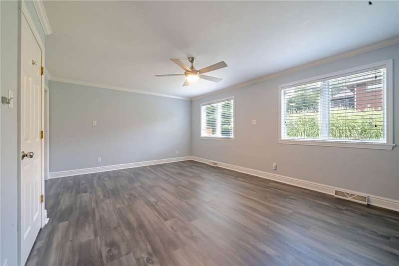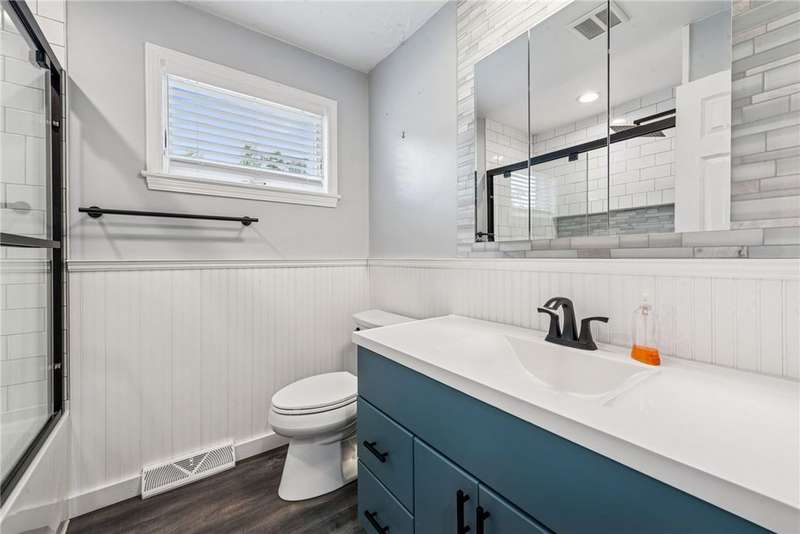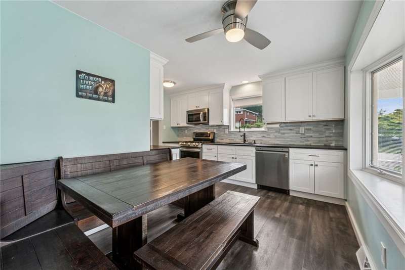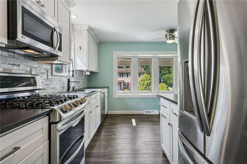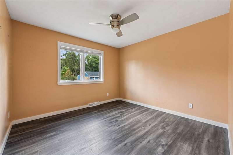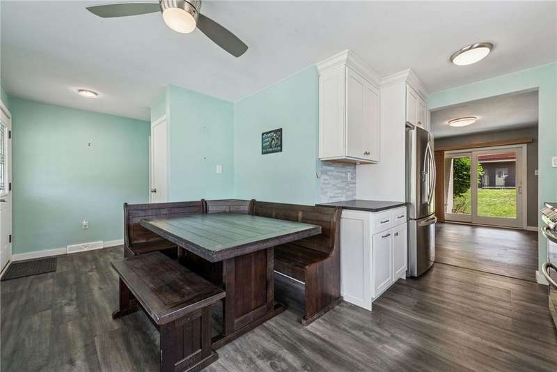 Step inside this amazing home where the modern updates are sure to provide ease and comfort you deserve! The L-shaped kitchen boasts a large front bay window providing plenty of natural lighting, Stunning 42" cabinetry with soft close drawers, deep undermount sink, stainless appliances including a French door refrigerator and a five burner gas range with convection oven! The spacious living room is complemented with a brick accent wall and log burning fireplace for those upcoming chilly nights and is open to the dining room that steps out to the covered rear patio, convenient for grilling! You're sure to love the oversized 18 x 14 primary bedroom that has a double closet with organizer! A handsome tiled tub surround, bead board accents, rain head shower and stylish vanity highlight the updated main bath. Easy maintenance Luxury vinyl flooring spans the entire main floor of this home! The oversized two car garage is a plus! Relax on the front porch with maintenance free vinyl railing!
