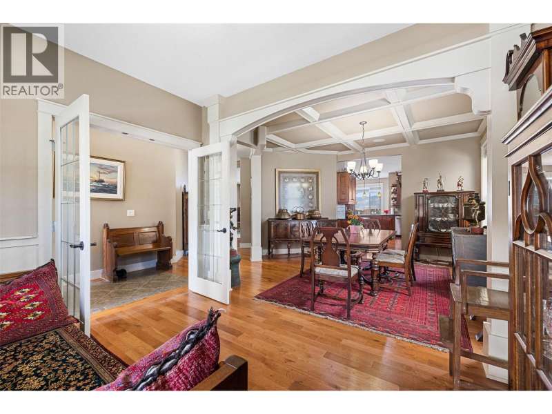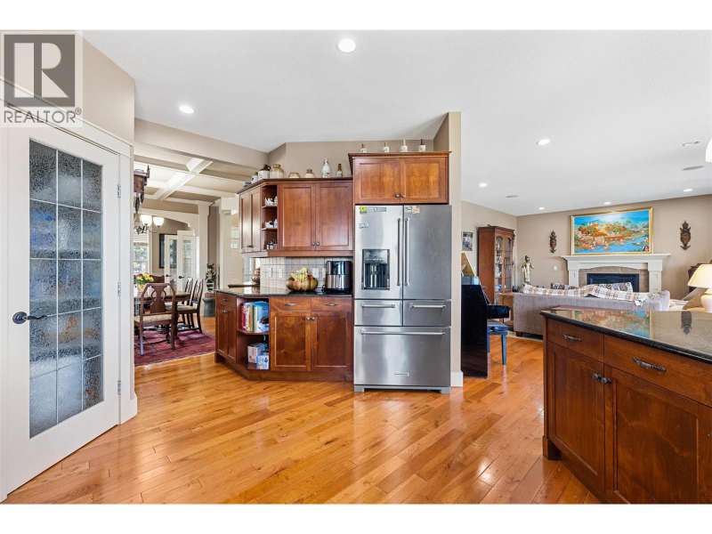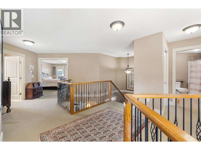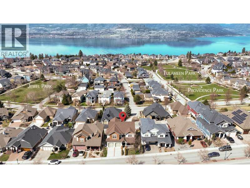 Truly spectacular Kettle Valley former show home by Kentland Homes, 4 Beds 4 Baths, over 3900 sq ft, nestled in the award-winning neighborhood. Showcasing custom craftsmanship throughout, this residence boasts tray ceilings, elegant arched doorways, and sweeping panoramic views. The bright, open-concept kitchen features granite countertops, stainless steel appliances, gas rang & eating nook that flows seamlessly into the family room—perfect for everyday living. A separate formal dining and living room/office offer elegant spaces and functionality. Upstairs, the luxurious primary suite includes private deck with view, spa-like ensuite, and generous closets. Two additional bedrooms each feature large walk-in closets. The walk-out lower level offers large rec/games room, fourth bedroom, full bathroom, and access to private patio with hot tub overlooking lush landscaping and park. With features like a surround sound system, security system, cold room storage, and double garage. Short walk to Chute Lake Elementary, Kettle Valley shopping center & picturesque parks, tennis court, Quilchena water park, and scenic hiking trails. Revel in the joys of family living in this award-winning community! Home has suite potential, also has potential to add 1-2 bedrooms. (id:58403)