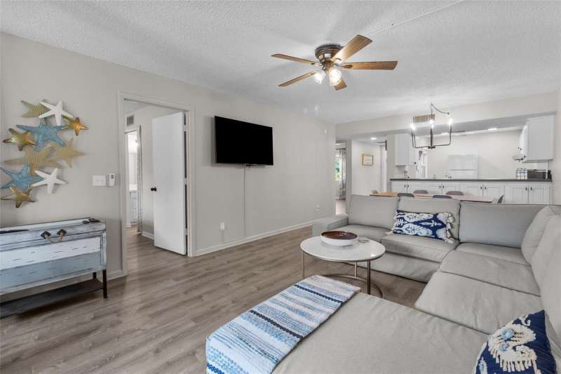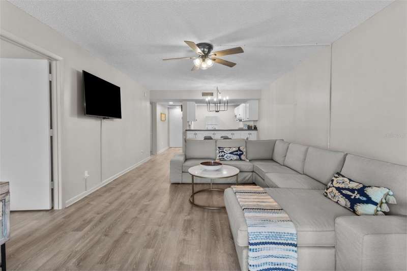 Under contract-accepting backup offers. Welcome to this beautifully furnished 2-bedroom, 2-bathroom first-floor condo in the highly desirable Lakeview of Largo South, a 55+ community just minutes from the white sands of Indian Rocks Beach. Perfectly situated in a no flood zone, this home offers comfort, convenience, and peace of mind—where shopping, dining, and everyday essentials are all within walking distance. Designed for easy living, this fully furnished residence features brand-new hurricane-rated windows that invite natural light while ensuring energy efficiency and storm protection. The open living and dining spaces create a warm, welcoming atmosphere, while two spacious bedrooms provide room for family, guests, or a home office. Step outside to your private patio and enjoy tranquil pond views—a perfect backdrop for morning coffee or unwinding at the end of the day. For added convenience, your covered parking space is located directly in front of your door. Lakeview of Largo South is a beautifully maintained community offering a relaxed, coastal lifestyle at an affordable price. With its serene setting and unbeatable location, this condo is ideal for those seeking a full-time residence or a seasonal Florida retreat. Don’t miss your chance to experience the best of Florida living—schedule your private showing today!
