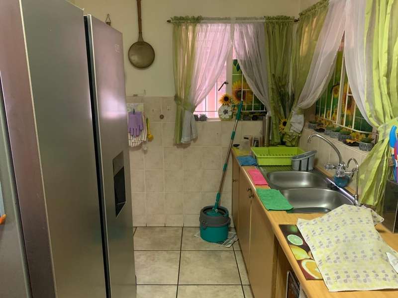 This immaculate home offers comfort, convenience, and stylish living. Featuring 3 spacious bedrooms and 2 modern bathrooms, main en-suite, it is perfect for a family or those who love to entertain. The open-plan dining room and kitchen create a warm flow, with the kitchen being a true highlight, beautifully fitted, complete with a scullery and laundry for added functionality. Enjoy year-round entertaining in the covered patio with enclosed entertainment area, fitted with a built-in braai, bar, and even a guest toilet. Perfect for hosting friends and family. Additional features include 2 garages plus 2 carports for secure parking Laminated timber floors for a modern touch Small, low-maintenance garden at the front and paved surroundings for easy upkeep Burglar bars, security gate and fibre-ready connection for safety and convenience Situated on a pan-handle stand with a shared driveway, offering added privacy This property combines practicality with lifestyle, Ready to move in, secure, and designed for comfortable living. Don’t miss out. Make this neat and charming home yours today
