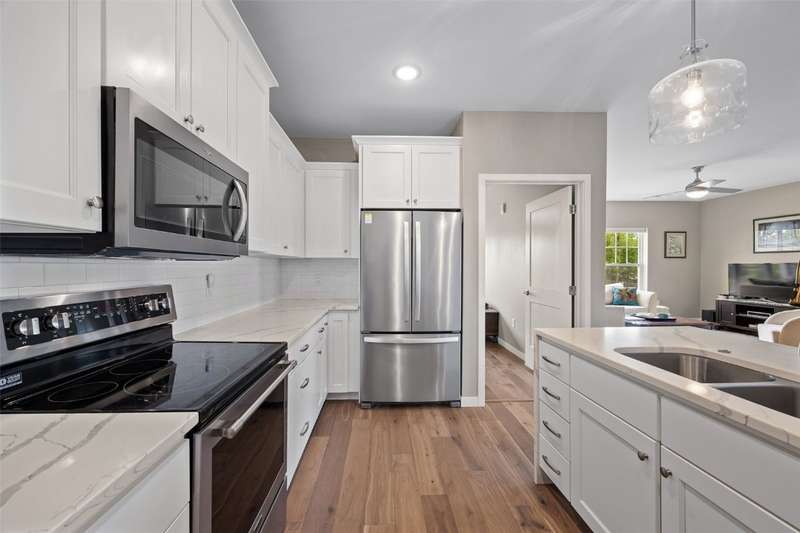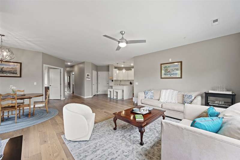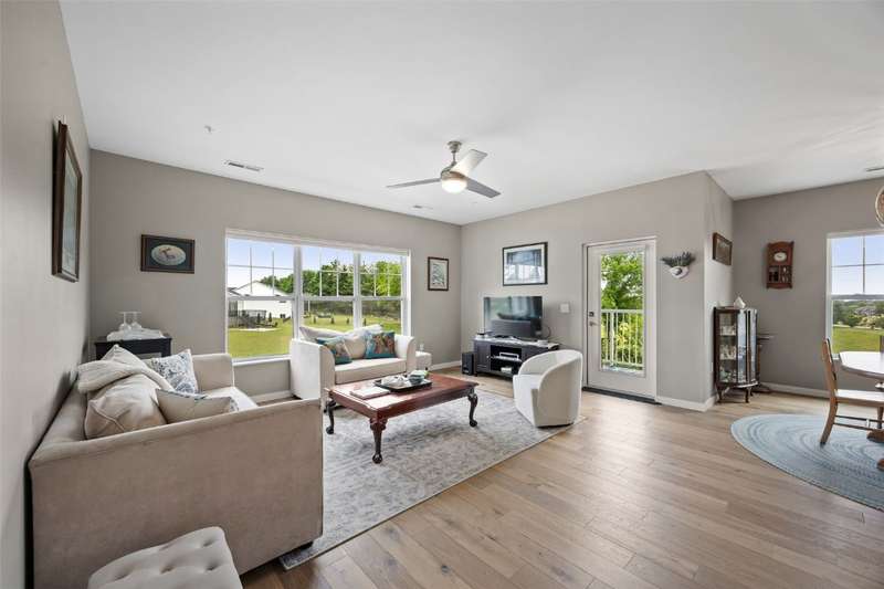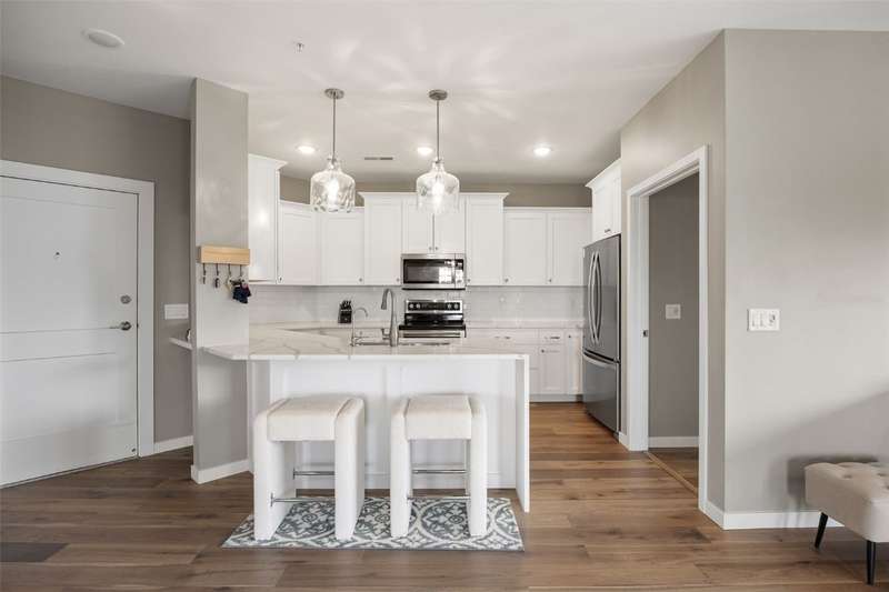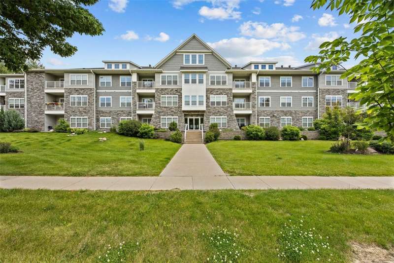 Experience upscale living in this stunning 3-bedroom, 2-bath condo located on Iowa City’s desirable east side. This meticulously designed home features high-end finishes throughout, including a stylish kitchen with quartz waterfall countertops, subway tile backsplash, a breakfast bar, and sleek white cabinetry. Ideally located at the end of the hallway, this unit offers enhanced privacy and quiet compared to interior units. Flooded with natural light, the open-concept living area showcases elegant lighting, and two private terraces with beautiful views. The primary suite offers a spa-like retreat with a spacious tiled shower and modern fixtures. Additional amenities include geothermal heating and cooling, two secure underground parking spaces, elevator access, a welcoming entry and common area, and a community exercise room. Price reduction from $435,000 to $415,000