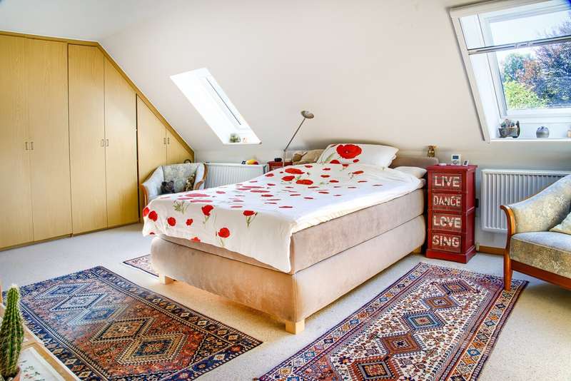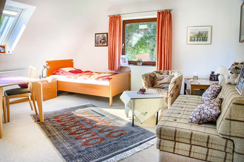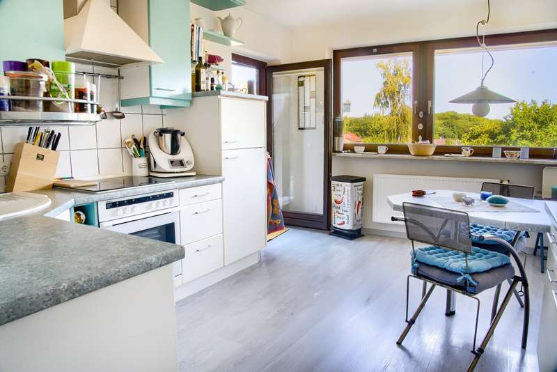 This well-designed and spacious 4-room apartment is located on the top floor of a well-kept residential building with a total of 4 parties. The apartments are divided between the main house and an annex. The property was built in 1888 as a solid construction and was last extensively renovated and refurbished in 1987. The apartment comprises the entire top floor as well as the partially converted attic. The residential unit has three beautifully designed bedrooms and a bright living area with a large window front. One of the bedrooms has a room-saving staircase, creating additional living space in the loft. The ideal room for young people! From the kitchen with dining area, you can access the approx. 9 m² roof terrace with a view of the property and the green areas behind it. The bathroom with natural light has a shower and a bathtub as well as a double washbasin, WC and towel radiator. The apartment also has a small storage room and a very large storage room in the top floor of the house. All windows are double-glazed and fitted with precisely fitting pleated blinds. The apartment has a 10 m² spare room in the cellar and a carport parking space directly behind the house. We would be delighted to show you this beautiful apartment during a personal viewing and look forward to hearing from you!
