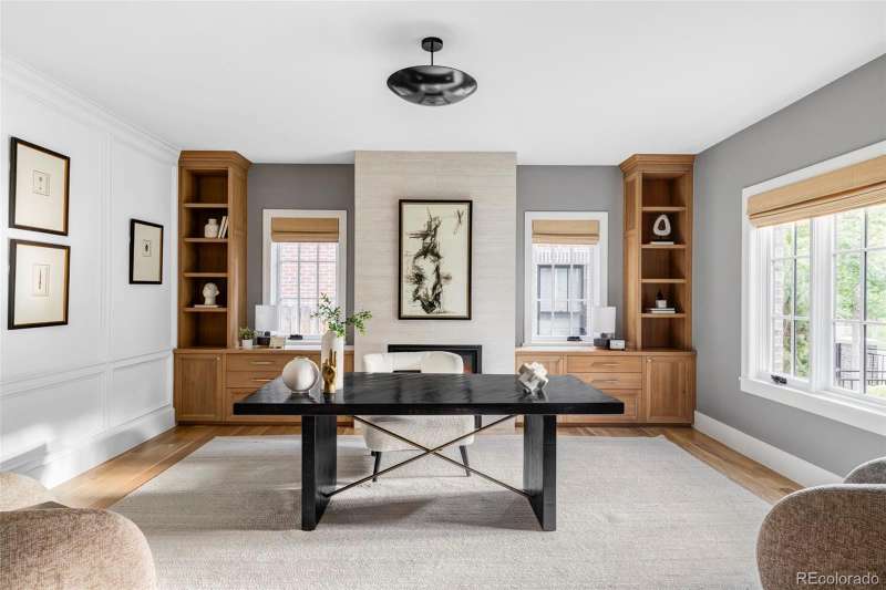 Located in the heart of Washington Park, this like-new Gunlock built home delivers thoughtful design with exceptional craftsmanship. The main level is anchored by a chefs kitchen with a dramatic 10-foot island, quartz countertops, top-of-the-line appliances, and a spacious butlers pantry. It opens to a bright and inviting great room with custom built-ins centered around a warm fireplace. The formal dining room with rustic beams and wainscoting walls is connected to the kitchen via a large butlers pantry. The stately private study with fireplace, a powder room, and an oversized mudroom complete the main level. Upstairs, the primary suite is a true retreat, featuring a spa-inspired six-piece bath wrapped in marble tile with private his and her vanities, toilets and closets, along with direct access to the laundry room. Two additional bedroomseach with their own en-suite bathand a versatile loft offer flexible space for family and guests. The thoughtfully finished lower level is designed for entertaining and relaxationwith high ceilings, an oversized wet bar, game and reading nooks, a spacious private guest suite, and a full bathroom. Outside, the front porch welcomes you with a porch swing, and the professionally landscaped backyard provides an ideal space for gatherings, quiet evenings, or simply enjoying the Colorado seasons.