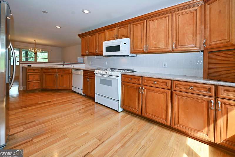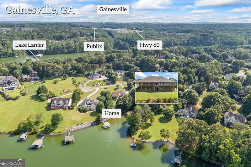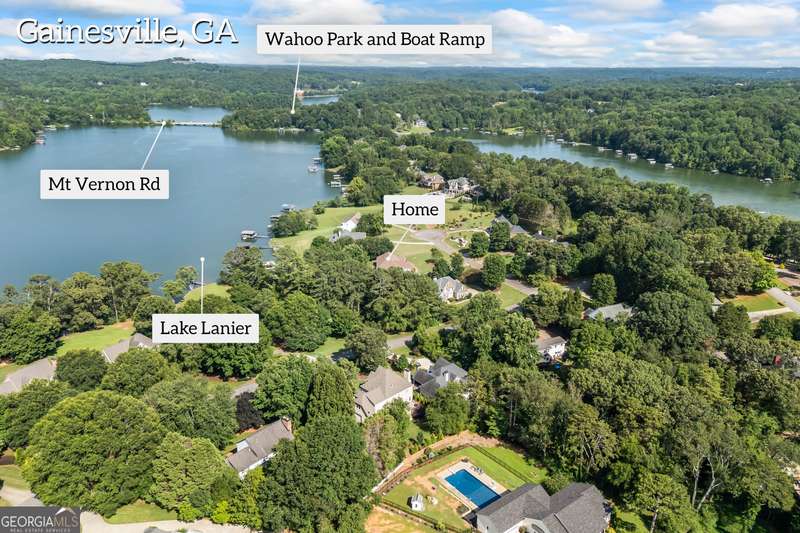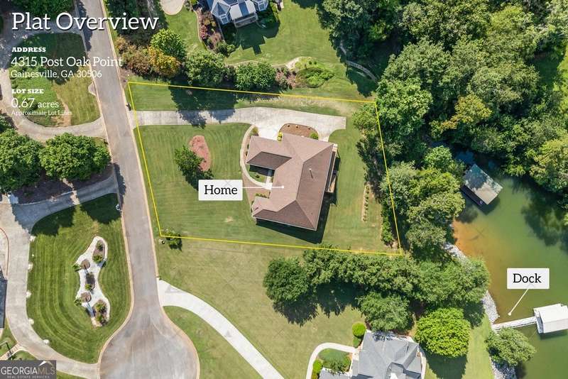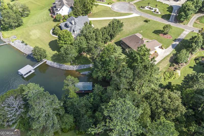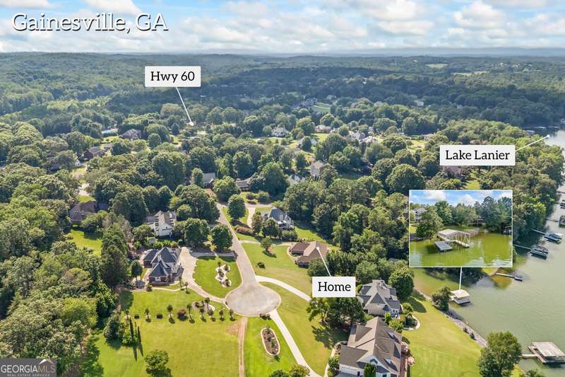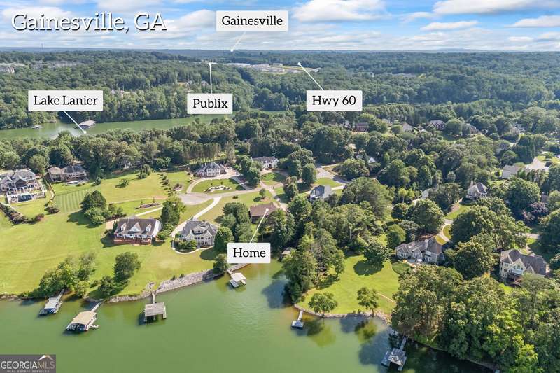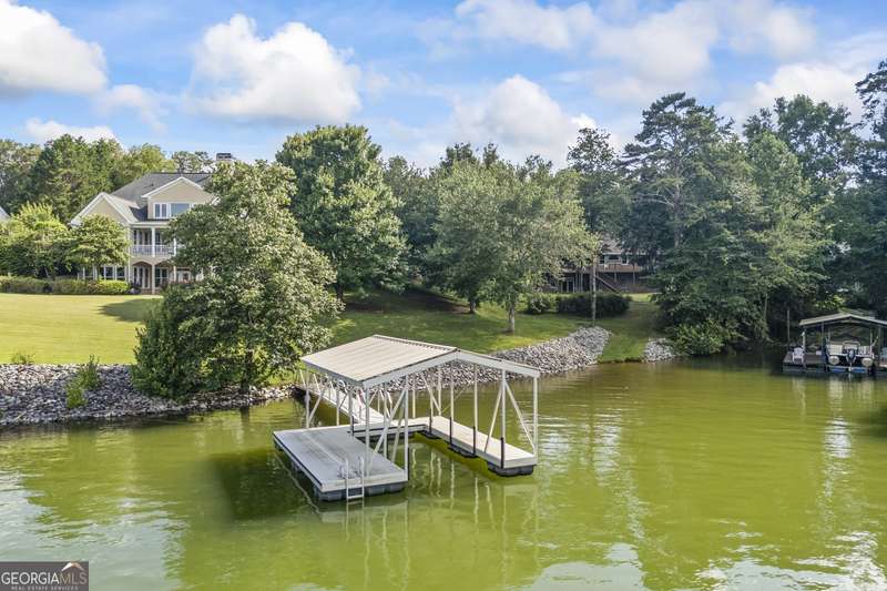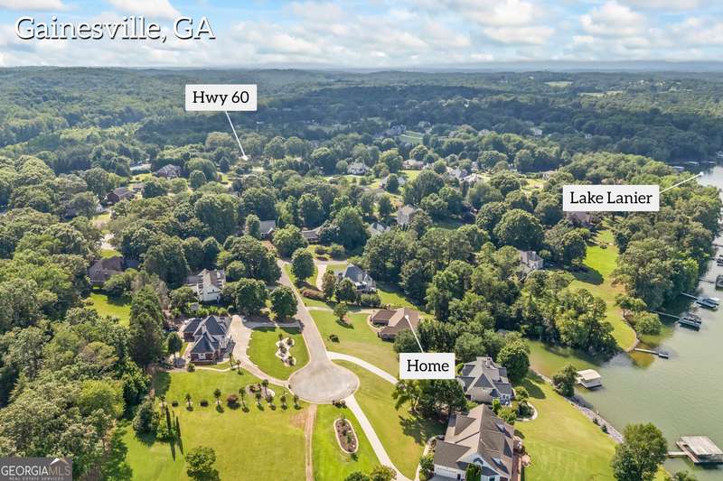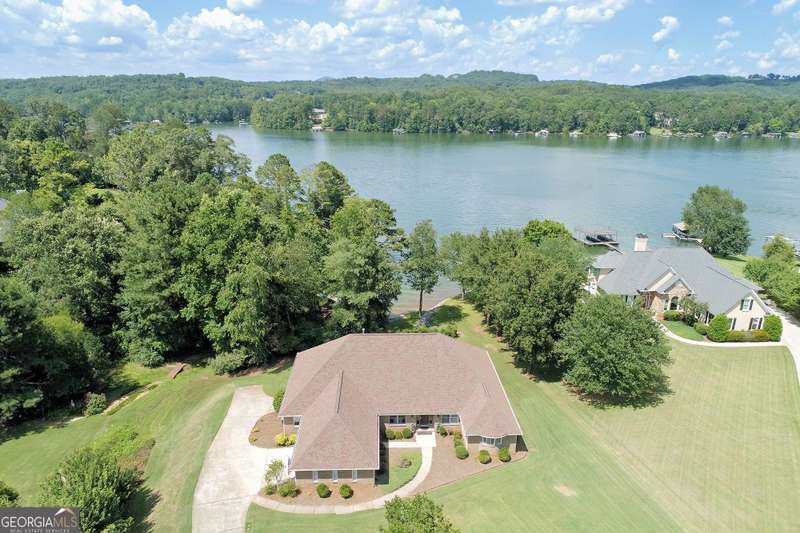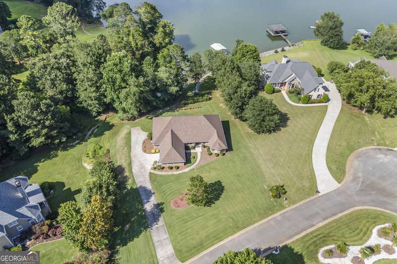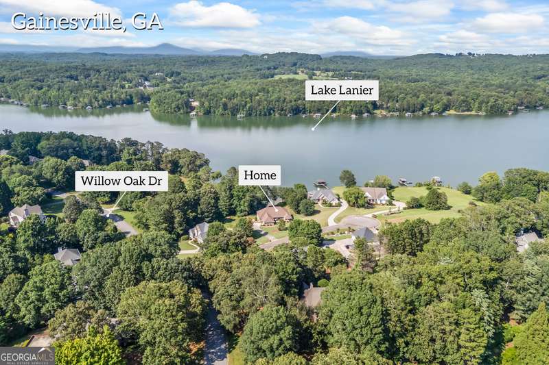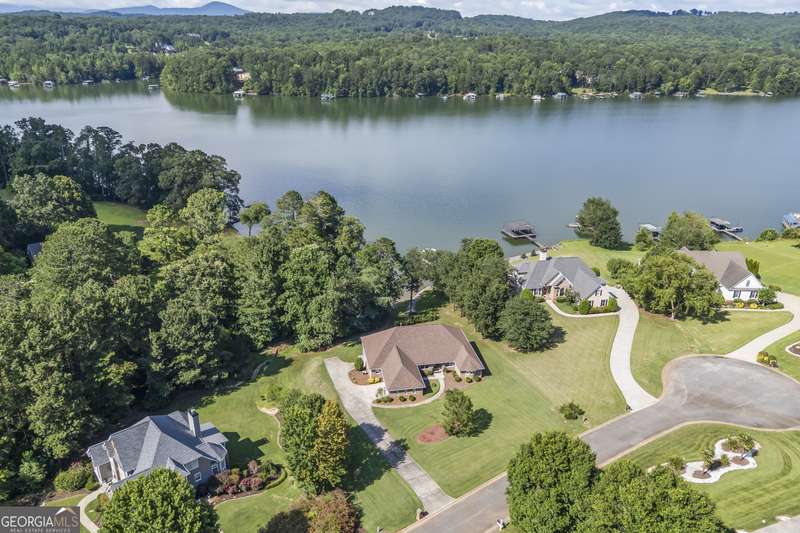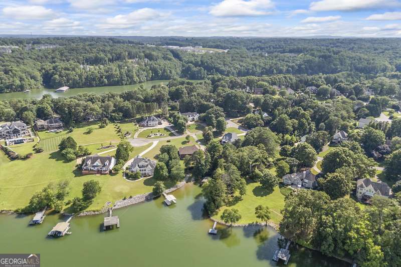 Lakefront living in sought-after Cherokee Forrest. This impeccably maintained, 4-sided brick residence offers over 4,500 square feet of living space on a gently sloping 0.67-acre cul-de-sac lot with direct access to Lake Lanier. A private single-slip dock in deep water is just steps away, and a composite deck spans the back of the home, providing peaceful, uninterrupted lake views. The 4BR/2.2BA split bedroom floor plan features a spacious primary suite with water views, while the terrace level includes a finished family room, bedroom, full bath, and a workshop-all with walk-out access to a lake-facing patio. Recent updates include a new roof and composite decking. Located in one of the area's most desirable lakefront neighborhoods, Cherokee Forrest offers community amenities including a pool, tennis courts, pickleball, playground, and pavilion.