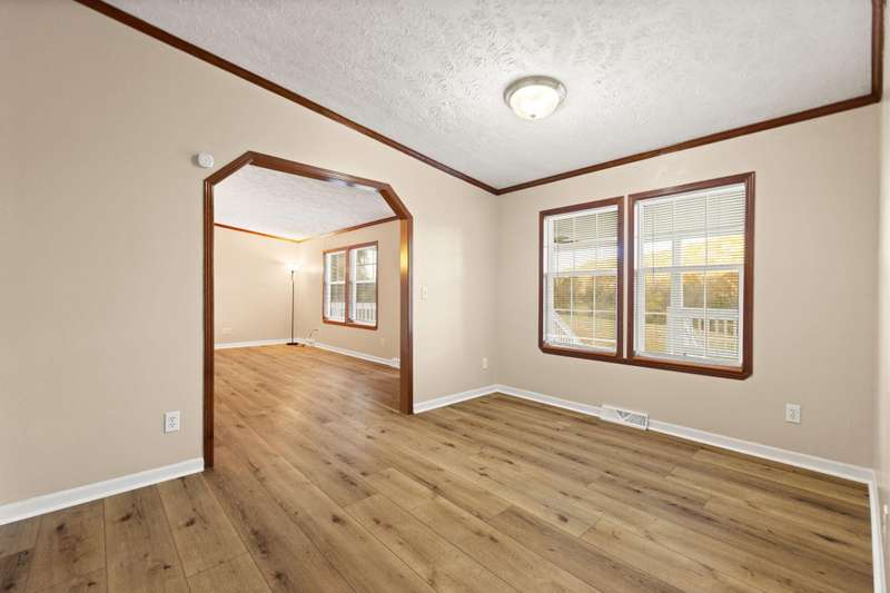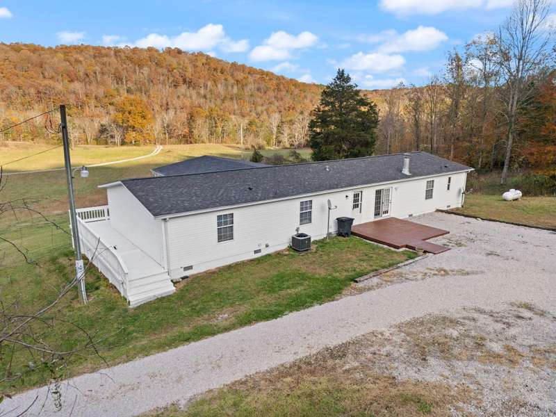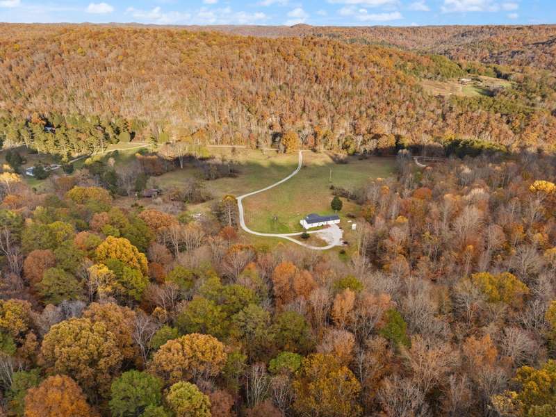 Talk about a BEAUTIFUL setting! As you can see this long driveway takes you back close to the back of the property and is surrounded with woods and outstanding views on this recently surveyed tract of 21.48 +/- acres (just surveyed in 2025 - tract 1) that also runs across the road giving you lots of road frontage on both sides of the road and extends to the middle of BUCK CREEK! That's right this farm not only has the setting, the cleared fields for pasture, horses or livestock on the UNRESTRICTED land but also private access to buck creek! This 4 bedroom home has been very well maintained along with new shingles as of Oct of 2024, This home features alot of square footage with not only 4 bedrooms but a primary bedroom that also includes a large en-suite, dining room, large utility room and a HUGE front deck to enjoy your coffee and company on with amazing view, most people only dream of having this setting with a move in ready home and these outstanding features, location and acreage but now it's available for your opportunity as the next owner!