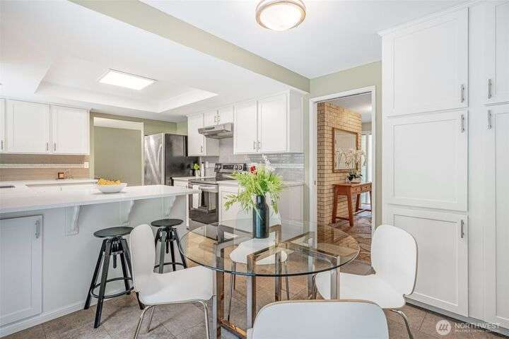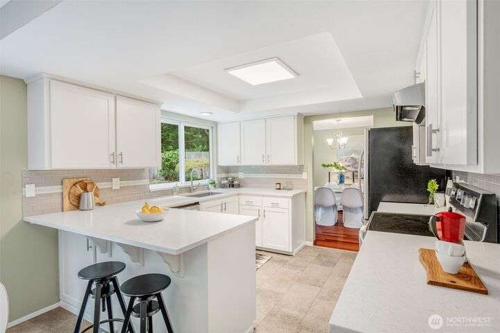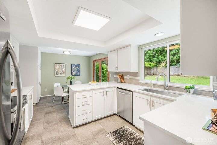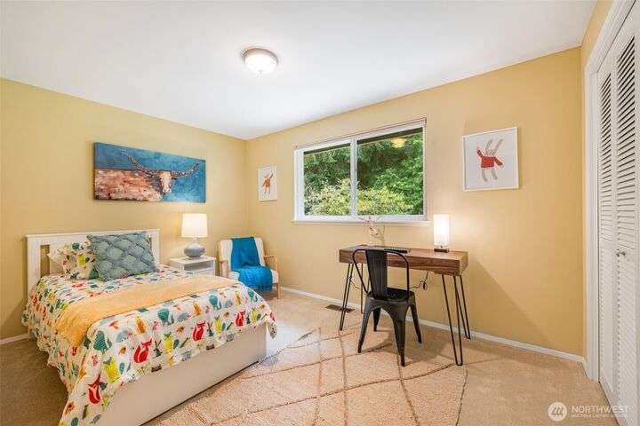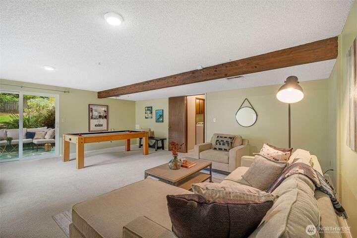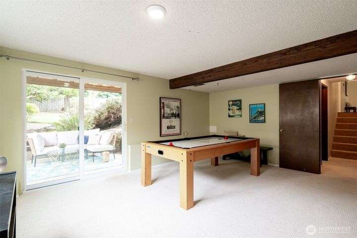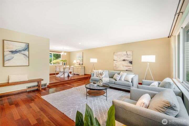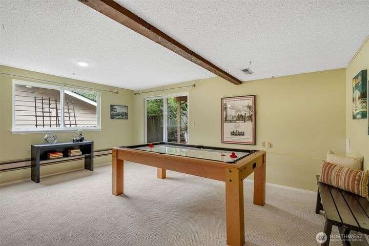 Well maintained Mid-century home nestled in the coveted Sherwood Forest in Edmonds. It offers a spacious 4BR and 2.25BA and the perfect blend of comfort and suburban tranquility on a generous .25 Acre lot. Step inside to discover an open and inviting floor plan featuring a bright living area with hardwood floors, and a cozy fireplace. The updated kitchen boasts SS appliances, quartz countertops and ample cabinet space, seamlessly connecting to a breakfast area and patio overlooking the backyard. Upstairs offers 4BR on same floor including a primary with en-suite. Step downstairs to an expansive lower level featuring a spacious rec room perfect for movie & game days and complemented by a connected patio for additional entertainment area.