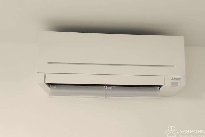 Special attention has been given to the quality of construction and choice of materials. Ceramic tiles in the bathroom, kitchen, and entrance area, oak parquet flooring in the living room and bedrooms, triple-glazed PVC joinery with mosquito nets and electric shutters, as well as burglar-proof and fire-resistant entrance doors, guarantee durability and security. Underfloor heating throughout the apartment, air conditioning units in every room, and a heat pump located in the laundry room ensure optimal comfort all year round.
