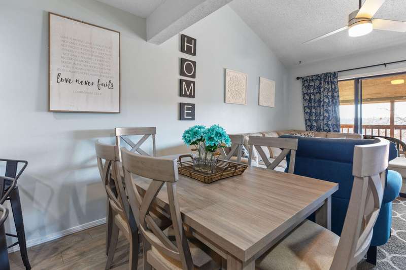 Elegantly decorated, spacious condo nestled in the Ozark Mountains in the Notch Estates community featuring tons of amenities including a well-maintained swimming pool, basketball courts, play areas, scenic trails, and water/sewer! This charming 2 bedroom, 2 bath condo is a newly remodeled unit boasting a sprawling balcony with stunning views ready to entertain! The desirable, turn-key, upper-end level unit has an open, spacious floor, large bedrooms, big walk-in closets, and all appliances including a washer and dryer make this a gem! Bonus feature: it is fully furnished, which makes this luxury condo perfect to call home! Also, great investment property as it is a current nightly rental or would make a wonderful vacation home!