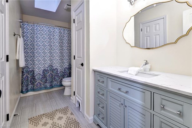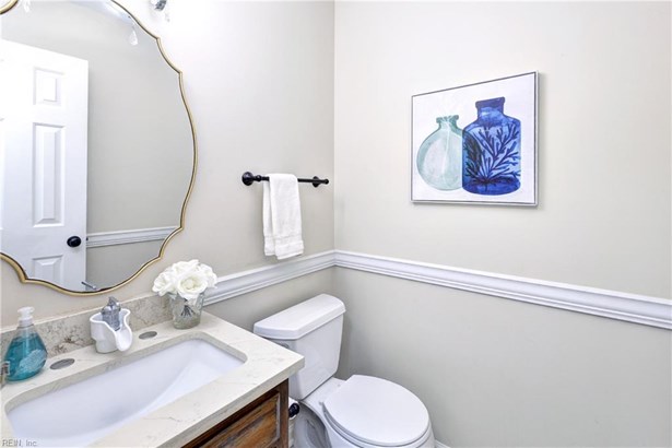 This beautiful 4-bedroom, 2.5 bathroom home offers the perfect blend of comfort and style. Inside, you'll find a welcoming layout featuring maple hardwood floors in the living and dining rooms, and tile flooring that flows seamlessly through the kitchen, hallway, and bathroom. The updated kitchen features modern cabinets, sleek counters, a stylish backsplash, and high-end appliances. The family room opens to a large back deck, perfect for outdoor dining or relaxation. Upstairs, the primary suite features its own private deck and a renovated bathroom with a tile shower and new vanities. Also upstairs, the bedrooms feature hickory hardwood floors, and storage is abundant thanks to a large walk-in attic. The home has been thoughtfully updated with a new roof, dual HVAC systems, a fenced backyard, and new front and rear doors. Set in Kiln Creek’s desirable York County section, this property offers a rare combination of modern updates, classic charm, and a peaceful cul-de-sac setting.