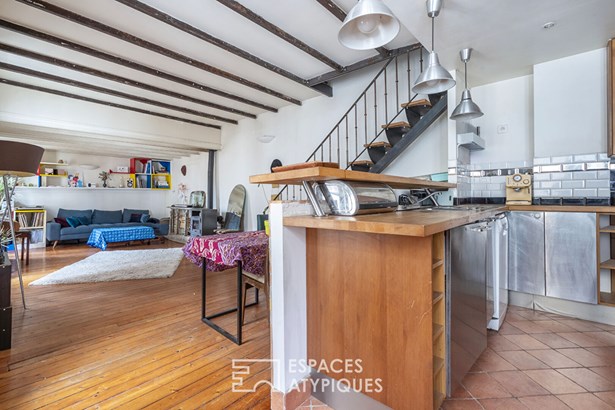 Located on Rue Pelleport and nestled on the top floors of a 1930s building, this attic triplex offers 90.06 m2 of floor space (53.08 m2 Carrez law) and captivates with its unique style.