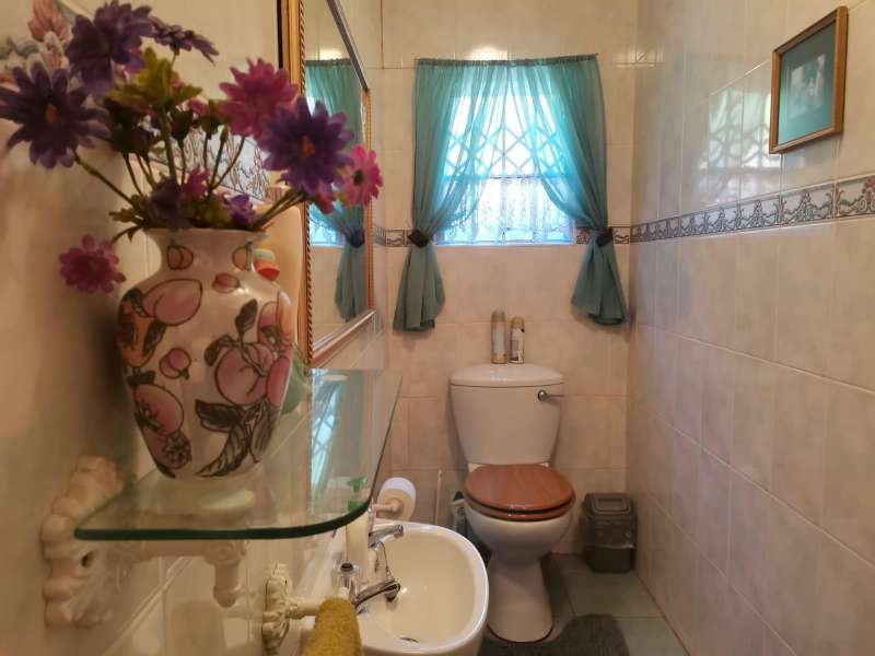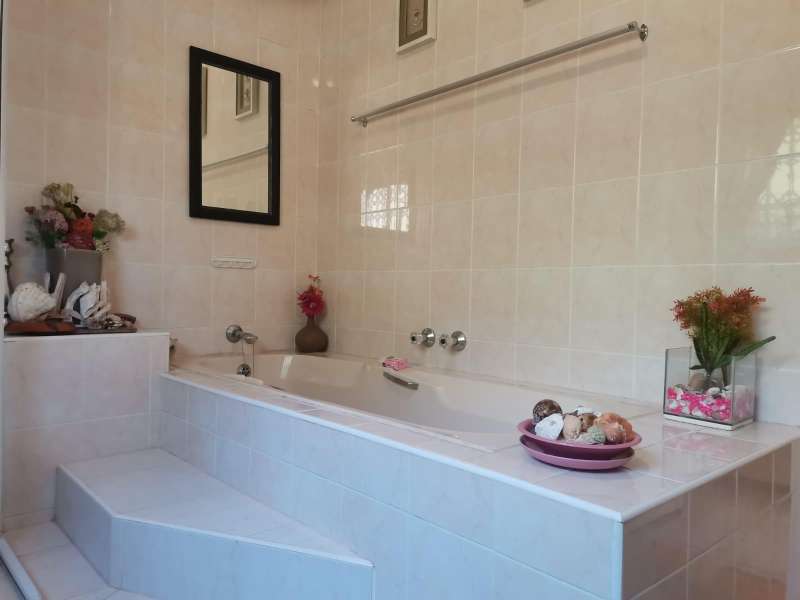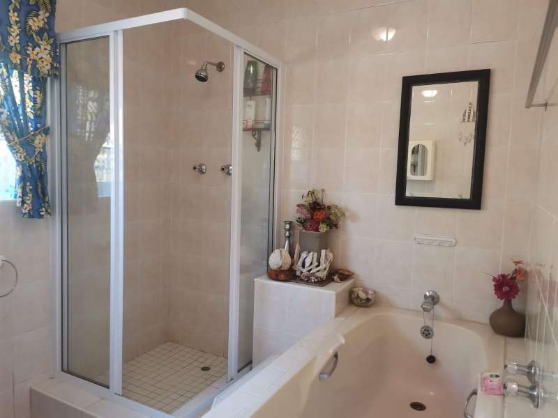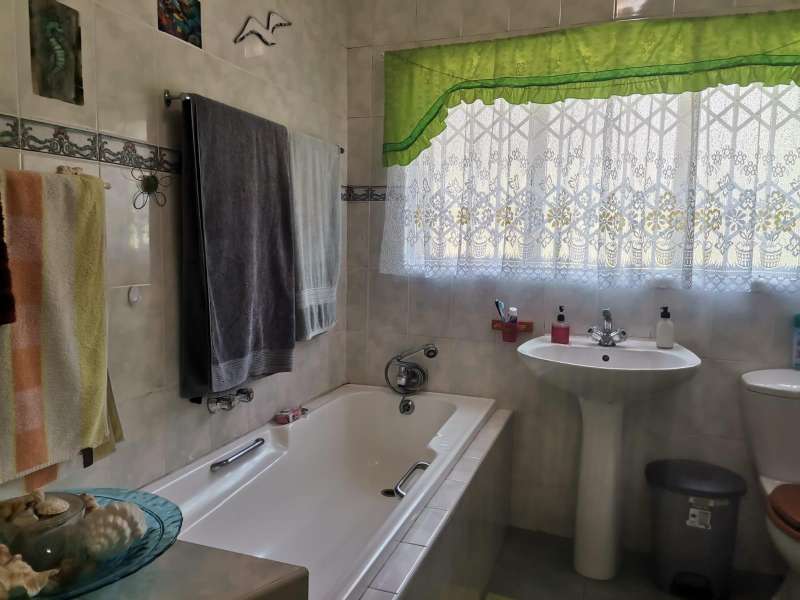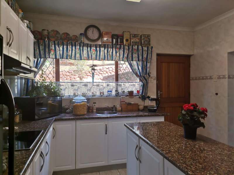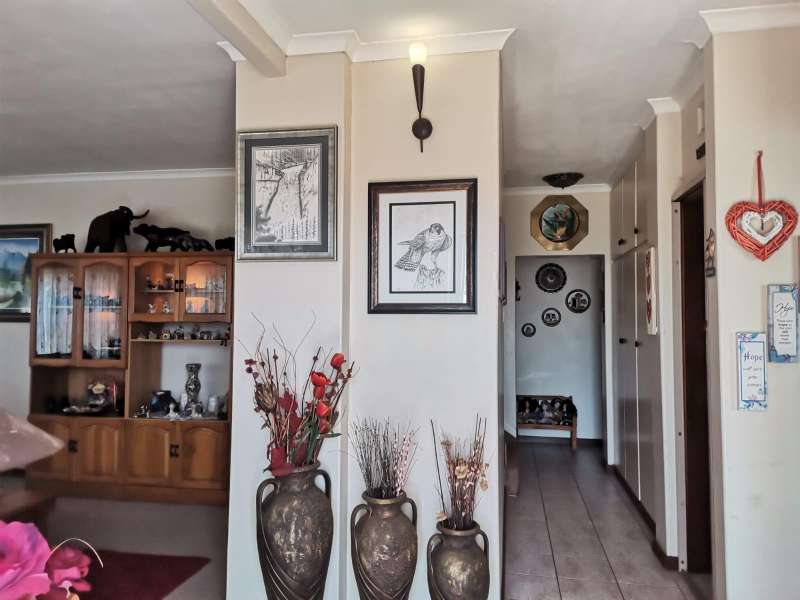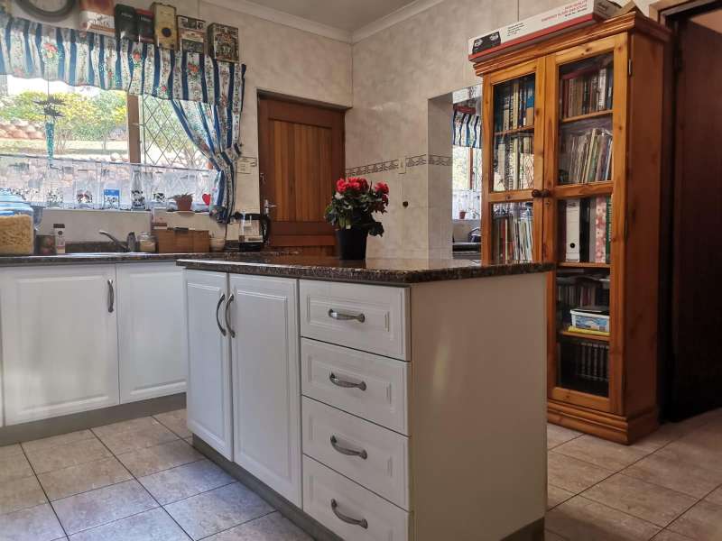 UNIQUE, MODERN HOME - 4 BEDROOMS Set on a hill overlooking Amanzimtoti and the ocean, this very Unique 'A' frame house has everything you could wish for in a home. From the moment you enter through the electric gates, the magnificence of it strikes you. At the top of the driveway, is a large turning circle and three garages and carport, the home is to the right, set in a level manicured garden, with big thatched lapa and lovely swimming pool. As you approach the house up 3 steps, you won't believe the wonderful pivot front door, with a huge lion painted on it. As you enter, to the right is a small office and then a guest bathroom and further down the passage is a lovely guest bedroom en-suite, with its own entrance. There is a double sized lounge with a separate dining room that leads to the most magnificent, granite kitchen with island and scullery. In the centre of the hallway is an imposing stairway leading up to three more king sized bedrooms, the main one is en-suite and has a big open balcony overlooking Amanzimtoti and the ocean and another study, that could easily be a fifth bedroom. There is a modern large general bathroom also on this floor. The property also includes a separate two-bedroom unit for staff members. If you are searching for something spectacular that offers modernity, comfort and style in a great location, close to beaches and all amenities, then this is for you.