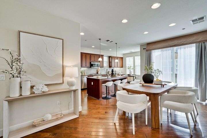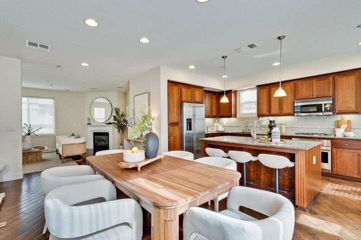 Welcome to this luxurious 3 BR, 3.5 Bath SFR, a Former Model Home Built by Taylor Morrison. Nestled in the heart of Silicon Valley, this stunning property offers the perfect blend of comfort, style, and convenience. The main floor features open-concept living, dining, and family areas with a private balcony perfect for entertaining. The gourmet kitchen showcases an oversized island with sink, granite countertops, hardwood floors, and premium stainless-steel appliances. A ground-level bedroom with a full bath provides flexibility for guests or a home office. Additional highlights include an in-unit laundry area on the ground floor and a spacious attached 2-car garage. Located just minutes from Apple Park and major tech campuses, this home epitomizes modern Silicon Valley living where elegance meets everyday convenience.