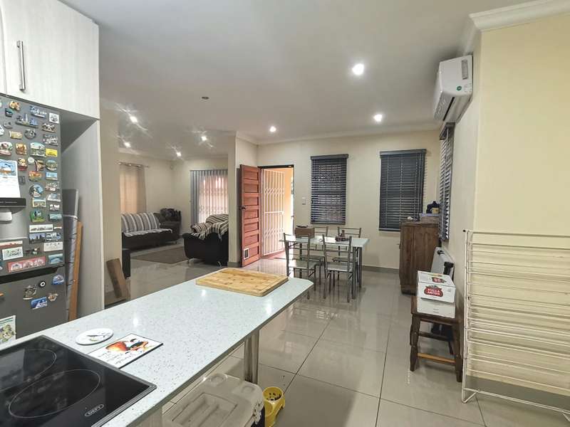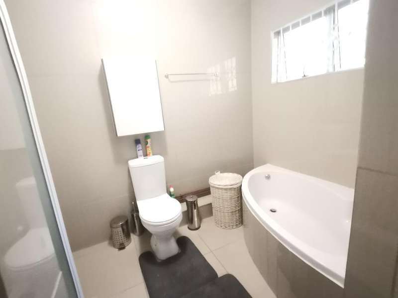 Modern and spacious home with air-con, lovely open plan lounge to dining, nice size kitchen with lots of cupboards, very good size bedrooms, master bedroom has its own en-suite, and a walk in closets, very neat the tenant is looking after this place very well. The yard is quite big on both side, Automated double garage with extra parking in front of the property, Its is pet friendly, Alarm &24 hour patrol guard, electric fence and guard house. very close to N2 and Winkel spruit shopping centre