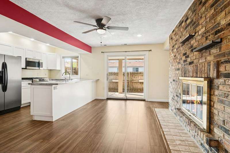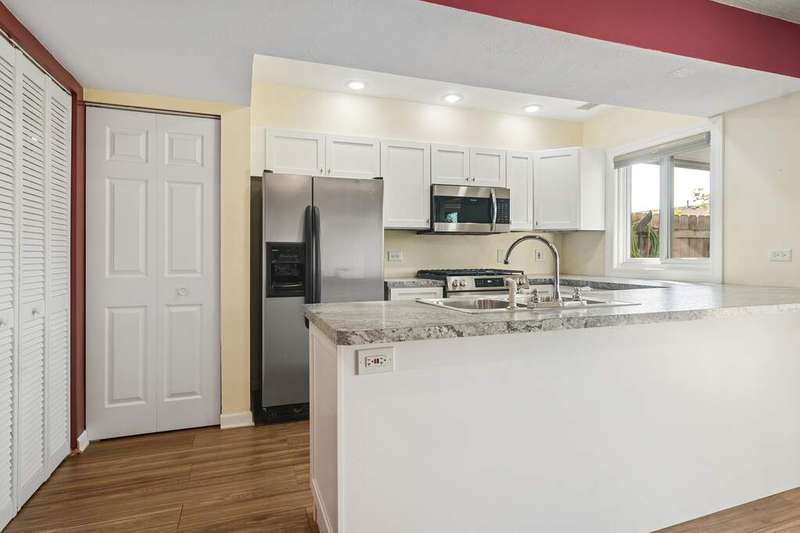 Welcome to this rare gem! This delightful three-bedroom unit boasts a private entrance and offers the ease of one-level living-ideal for comfort and convenience. As you step inside, you'll be greeted by a brick, multi-sided fireplace that provides warmth and ambiance throughout the cooler months. The spacious living room features an abundance of windows and a sliding door that fills the space with natural light, creating a bright and inviting atmosphere. This open layout flows seamlessly into the updated kitchen ('23), adorned with sleek white cabinets and generous countertop space, making it perfect for entertaining. The eat-in kitchen area serves as the heart of the home, where family and friends can gather. Enjoy outdoor living on your fenced-in patio, accessible through additional sliding doors-an ideal private retreat for relaxation any time of the year. Retreat to the primary suite, which features wood laminate flooring, a his-and-her closet, and a private full bathroom for added convenience. Two additional bedrooms and another full bath complete this thoughtfully designed living space. Additional highlights include an in-unit washer and dryer for your convenience. As part of this community, you'll have access to a pool, clubhouse and playground-perfect for leisure and socializing. This prime location offers easy access to shopping, expressways, and is just moments away from Route 90 and the vibrant Schaumburg area, filled with shopping, dining, and entertainment options. Updates include: water heater ('25), oven/range ('23), microwave ('23), dishwasher ('20), windows ('14), and AC ('16).