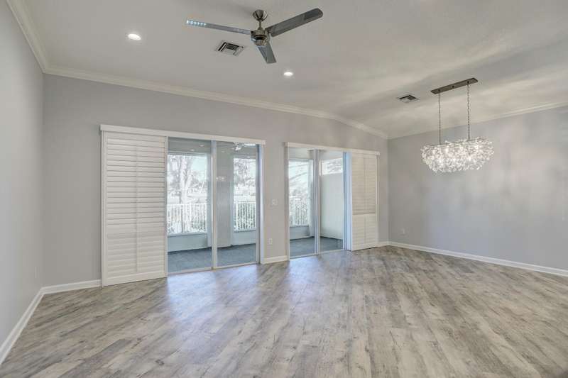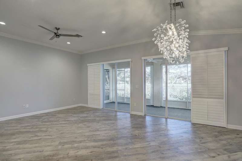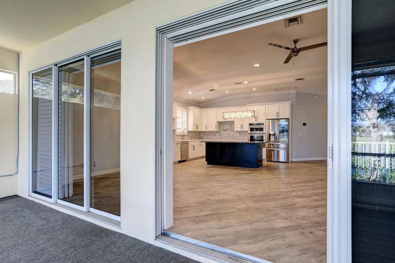 Rarely Available Westport Model on the Lake! Welcome to this beautifully updated 2-bedroom, 2-bath home with a versatile den/office, located in the sought-after community of Trillium with a peaceful lakefront setting. This model offers the perfect blend of comfort, style, and functionality. Step inside to find luxury vinyl plank flooring throughout the main living areas, a remodeled kitchen and baths, and a spacious lanai overlooking the water -- complete with a grandfathered-in backyard fence and lush Clusia for added privacy. This home is loaded with upgrades for peace of mind and convenience, including a NEW roof, 22 kW whole-house generator with a 250-gallon propane tank, gas tankless water heater, mini-split A/C in the garage, crown molding, plantation shutters, and easy-to-operate